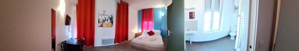 Bruyant. Chambre pas propre. Toilette cuvette sale. Pas de porte serviettes,pas d'étagères au dessus du lavabo,pas de tapis de douche. Une fenetre dans la chambre sans volet, ni rideaux. Payé pour un petit déjeuner, machine a café en panne.