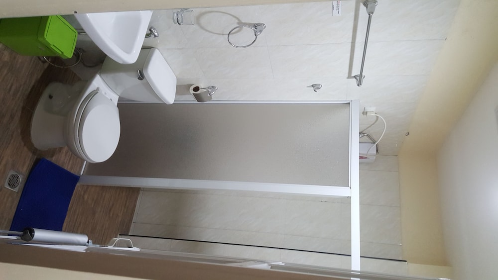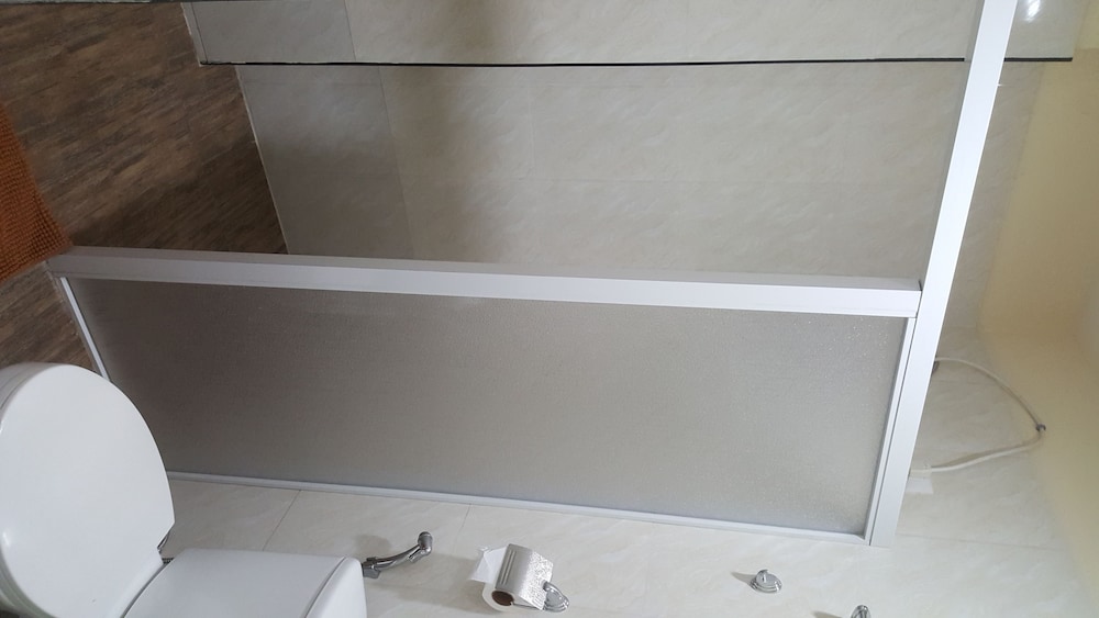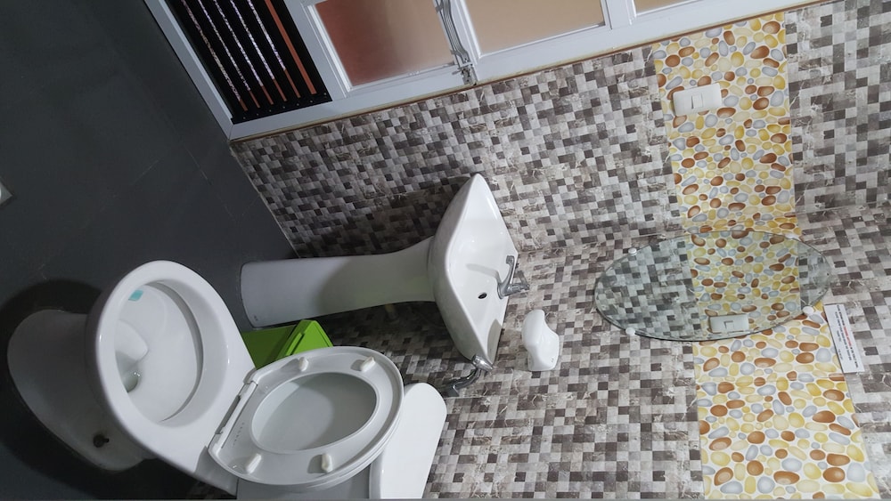 Bathrooms are tiny. First room the bathroom stunk like urine, the water didn't drain from shower so it pooled the whole bathroom floor including around the toilet. The exhaust fan didn't work so the bathroom became wet . There's no power point in the bathroom and in fact only 1 available In the room . After complaining we were put in another room which was a bit nicer but still small bathroom . Tv had many channels but was small, wifi was good and the air conditioning was good but loud . Shower had hot water but the sink didn't and the lighting in both bathrooms was dim .