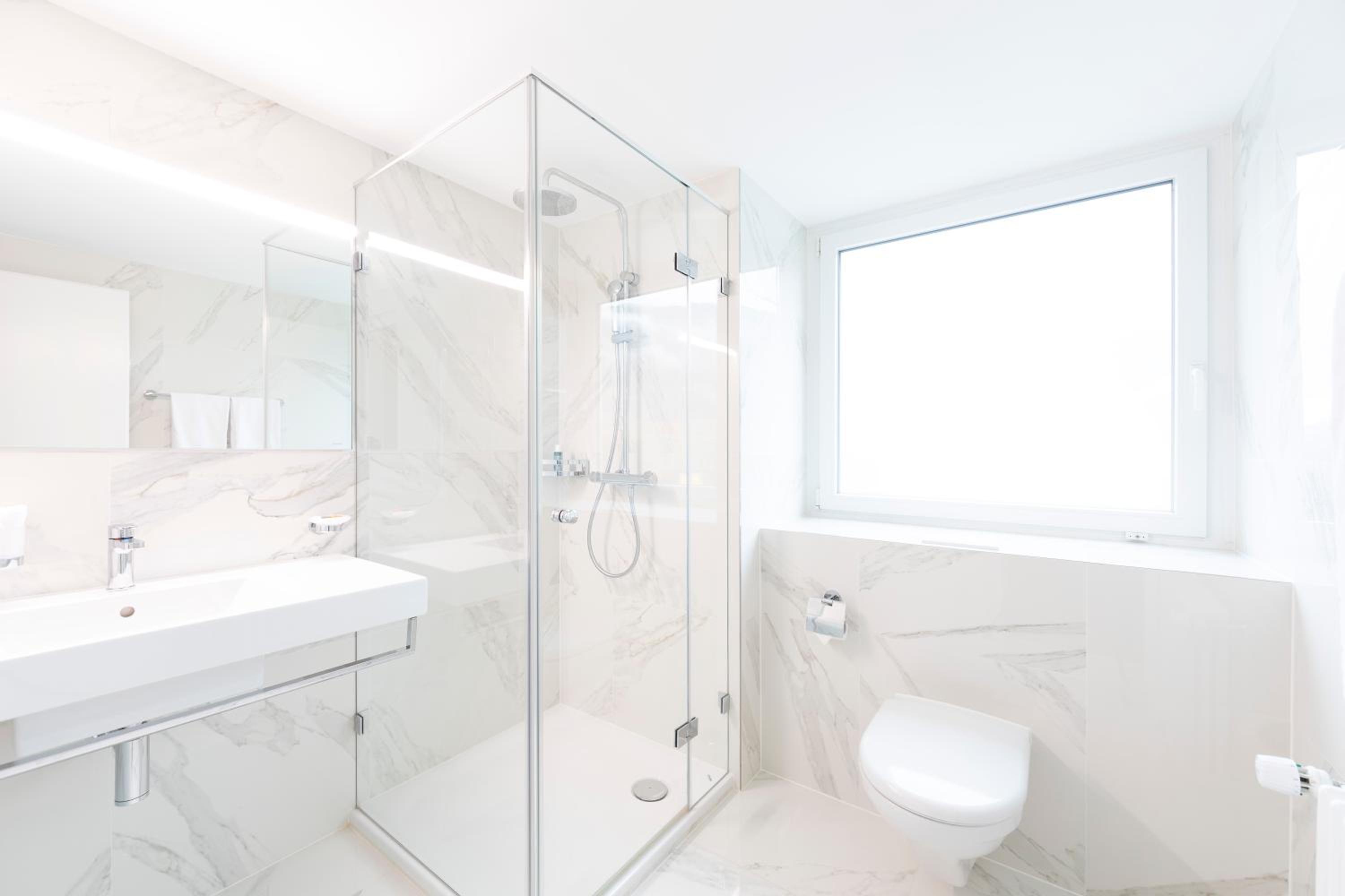 Das Wasser in der Dusche und am Waschbecken schwankte ständig zwischen sehr heiß und kalt, sodass sich die Temperatur nur schwer einstellen ließ. Außerdem war der Wasserdruck am Waschbecken sehr gering.