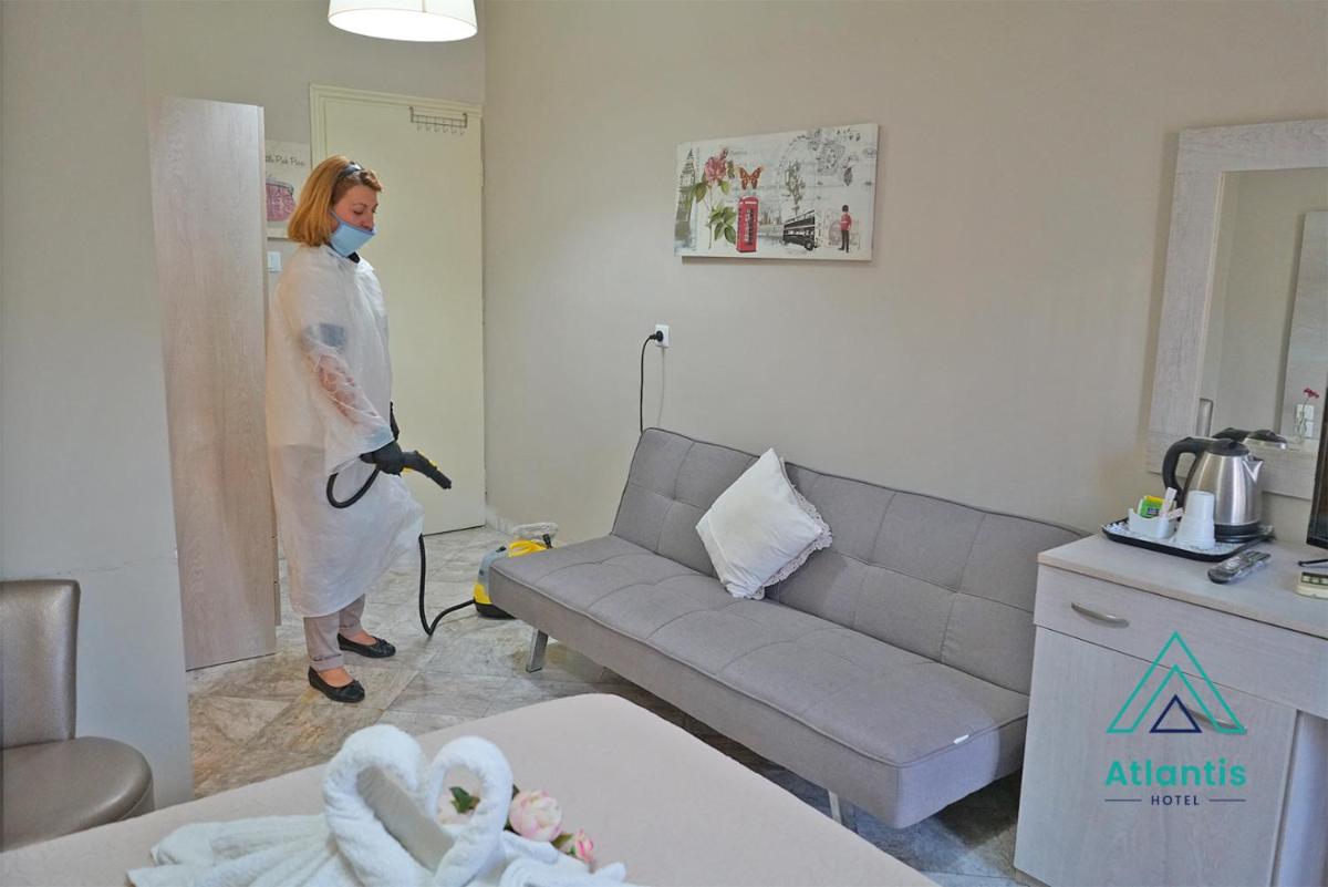 Each air-conditioned unit at Hotel Atlantis boasts a furnished balcony, satellite TV, and a safe. The rooms are tastefully decorated in earthy or bright tones and come with a private bathroom stocked with complimentary toiletries.