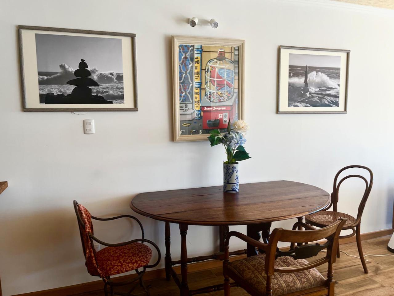 Experience a stay surrounded by nature at Lofts Casa El Pangue Zapallar. Admire the owner's private art collection and relax by the chimney in the ample living and dining room with stunning sea views. The period furniture and well-stocked bookshelves add to the charm of this holiday home.