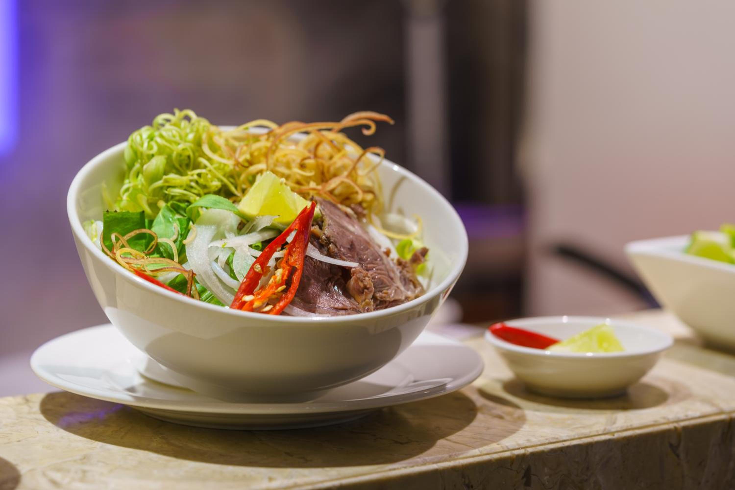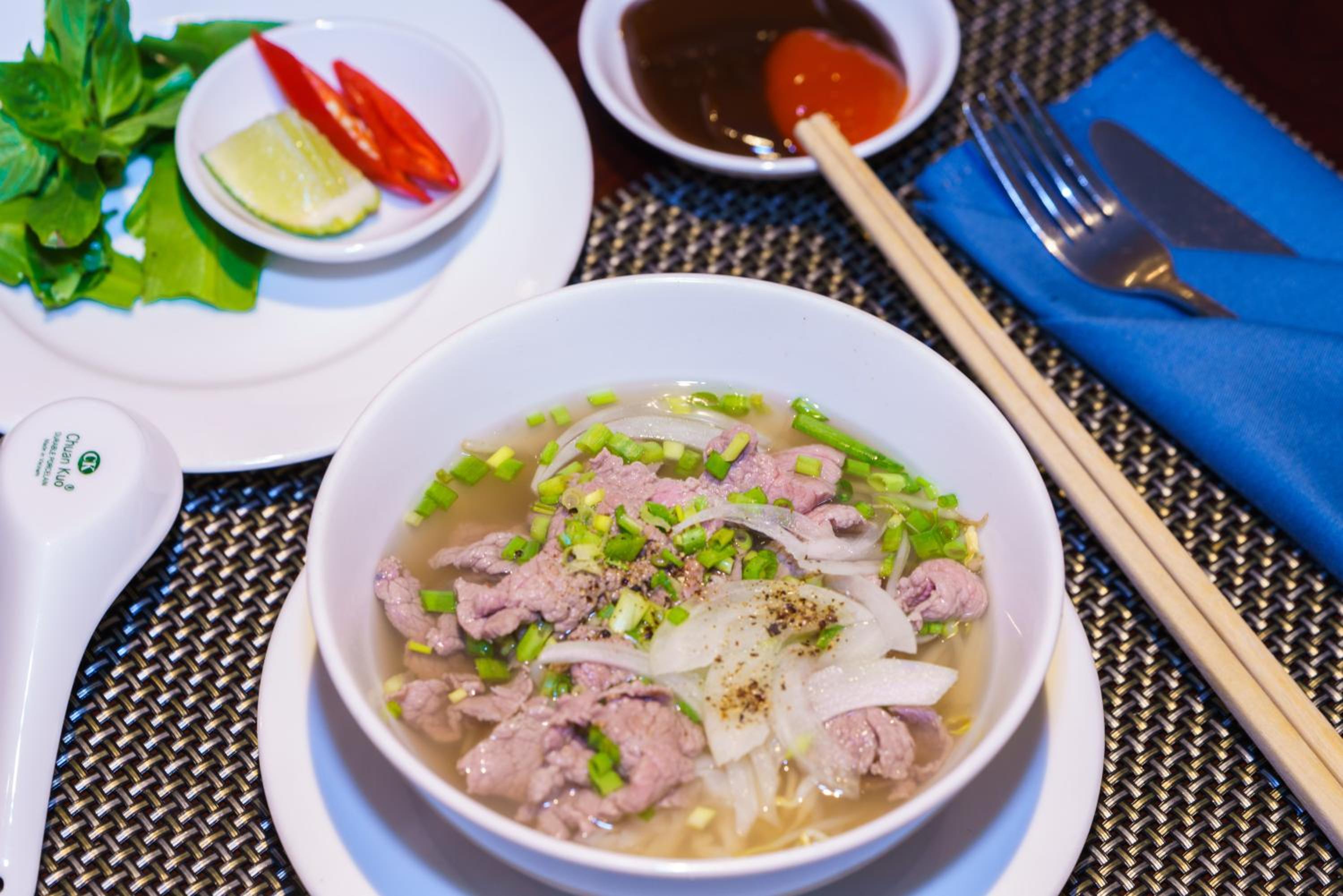 Location in the center, near Japanese town. Good breakfast especially chicken and Pho. Wy and Tom is very good