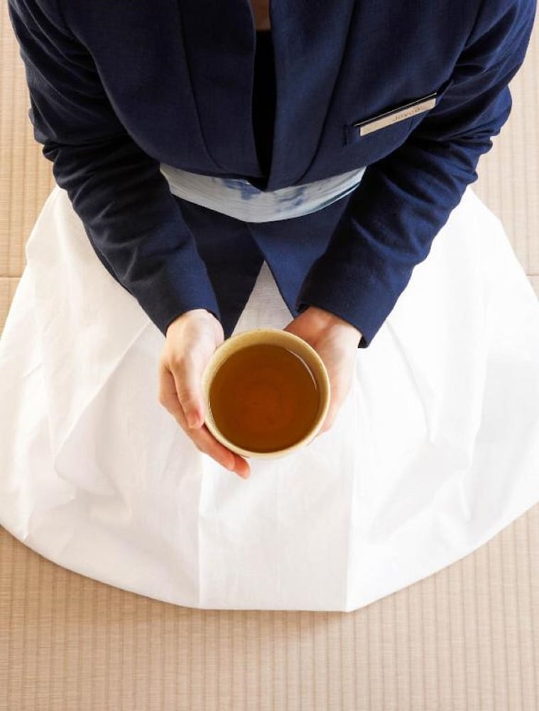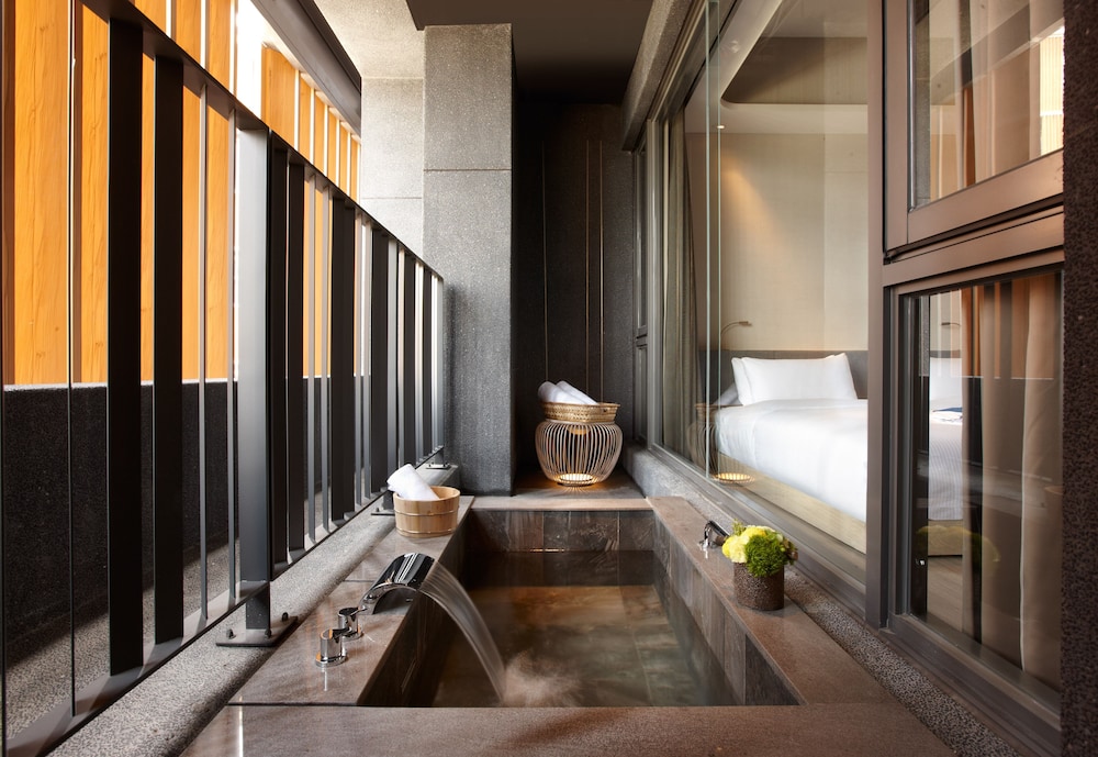 Rooftop infinity pool and onsen with view of surrounding mountains. open air, in room onsen on the balcony. Very good tea and tasteful Zen decor in each room. Very attentive and professional staff. The happy hour each afternoon was a nice touch on top of a very pleasant experience staying at this property.