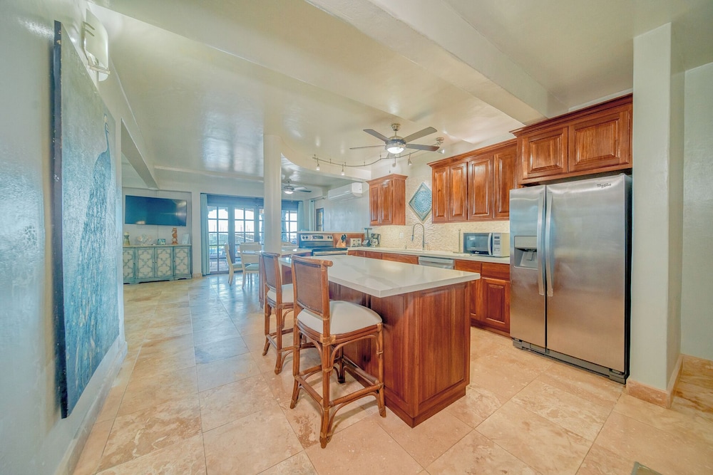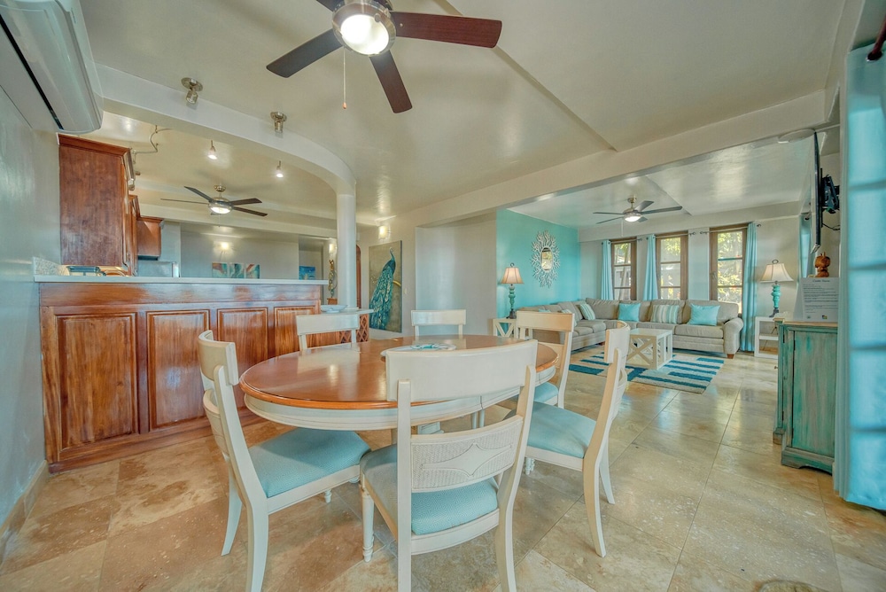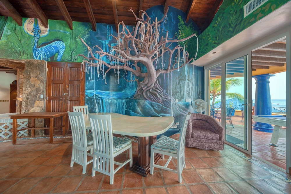 Great place for your HQ in Roatan! Walkable restaurants, shops, a little cafe, etc right along the beach. You can also do any island activity by boat or van as multiple excursion companies are represented along the beach.