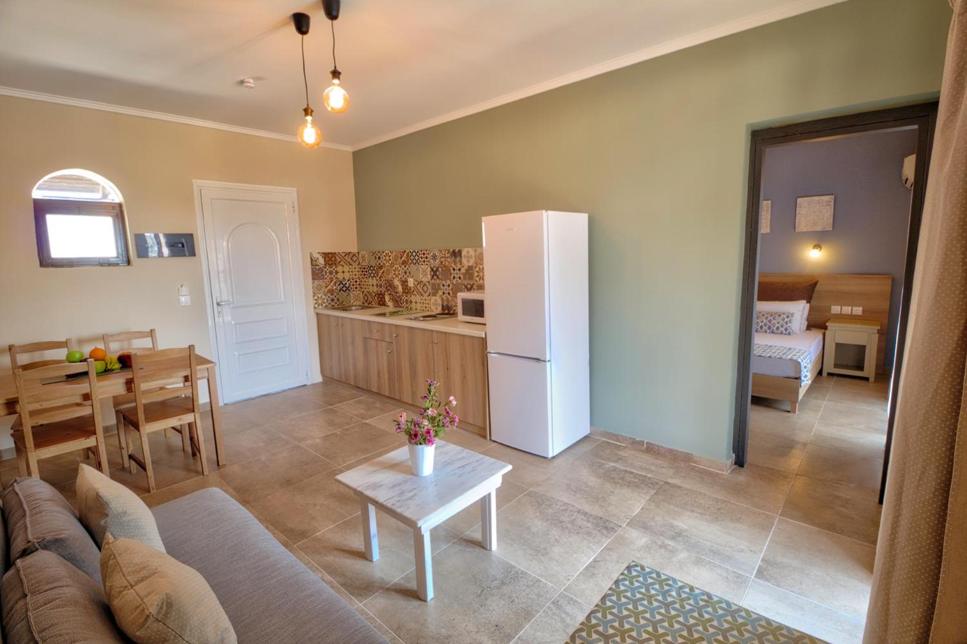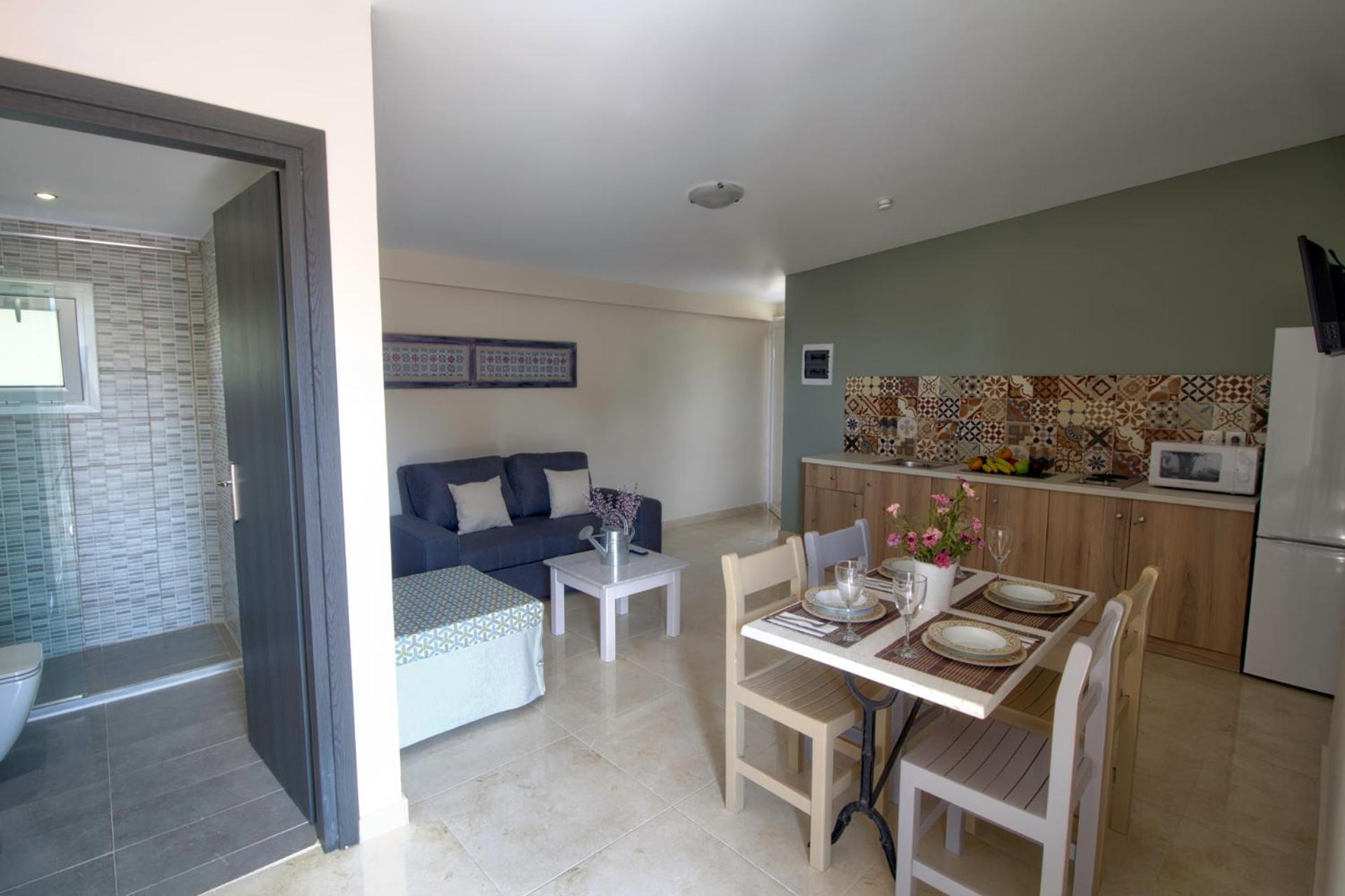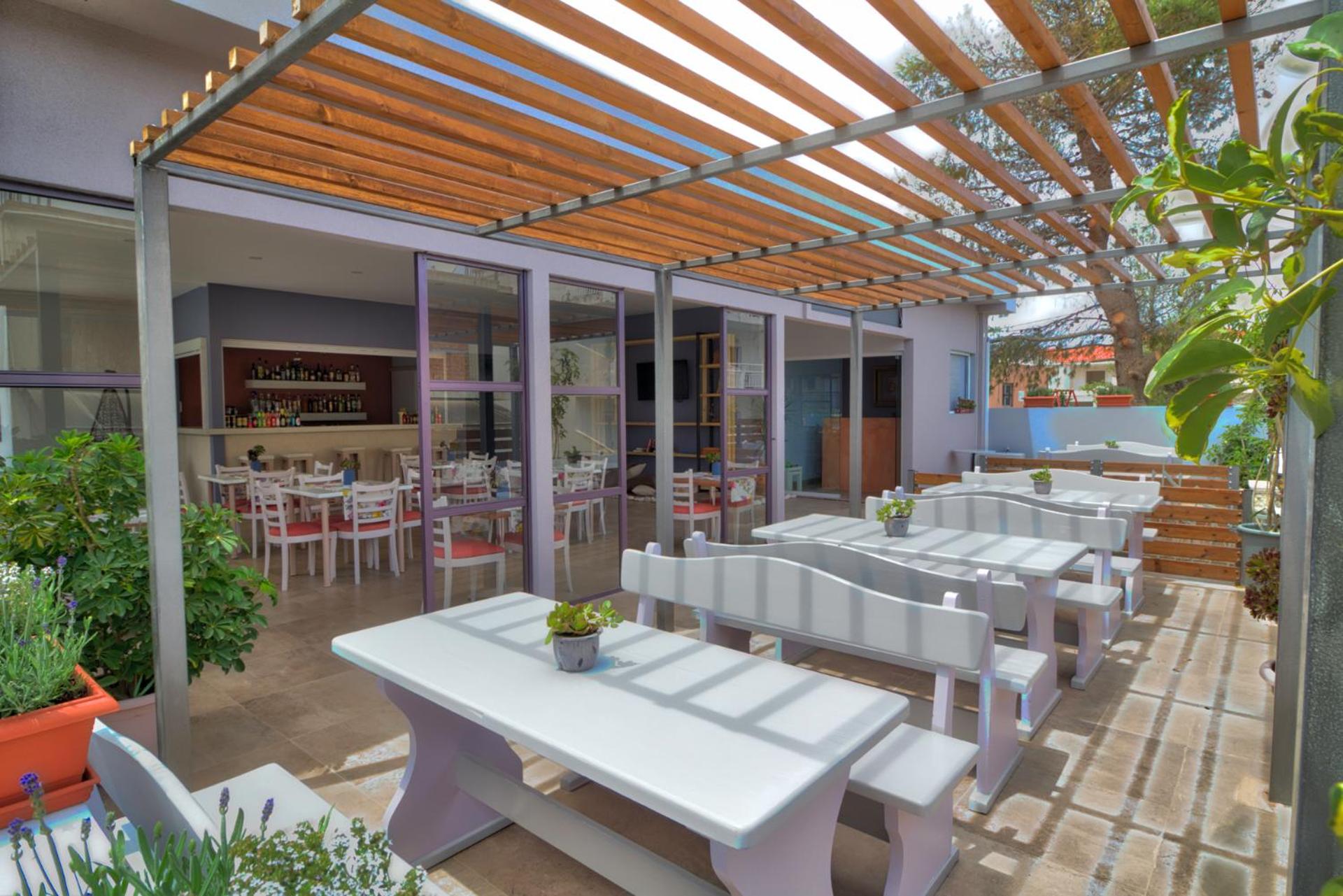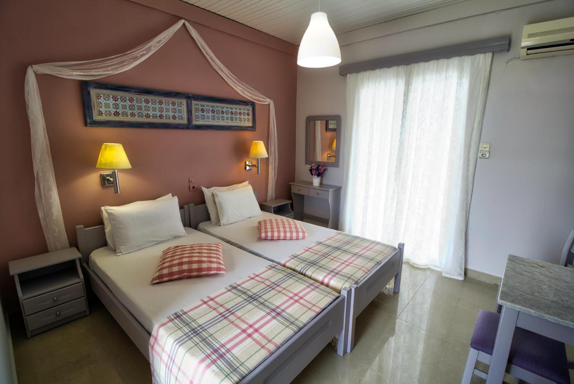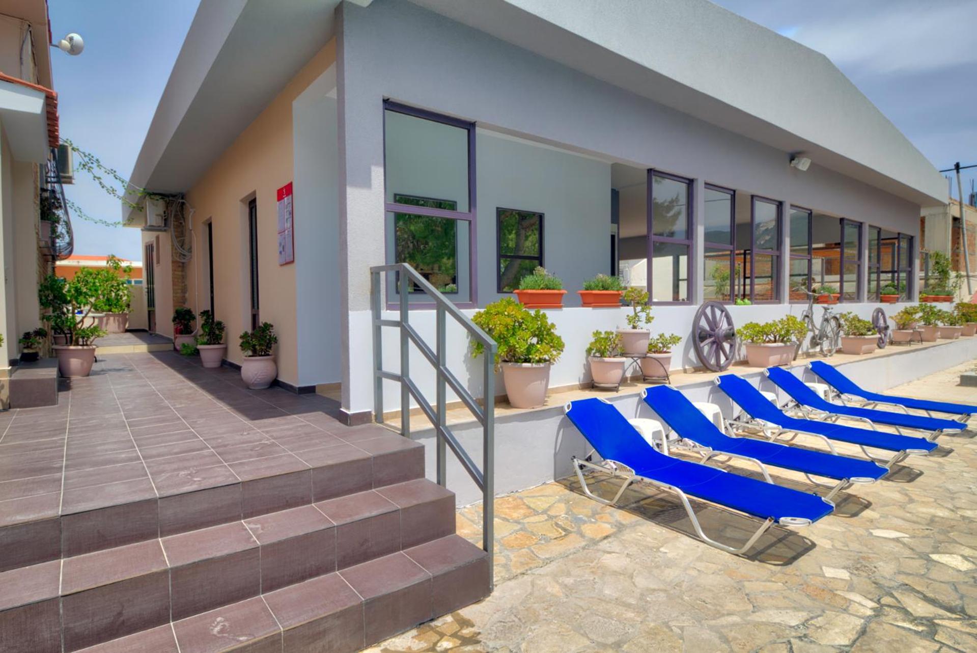 Понравилось расположение.. Отель находится недалеко от моря минут 7 ходьбы. Имеется бассейн. В номере имеется все, что нужно для отдыха. Созданы учловия для самостоятельного приготовления еды. Рядом есть магазин "Базар." Хозяева два брата Костос и Тахи очень гостепреимны Особенно мне понравился Костос. Всегда с улыбкой, доброжелателен, все подскажет, обьяснит.