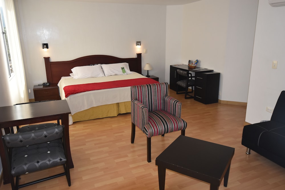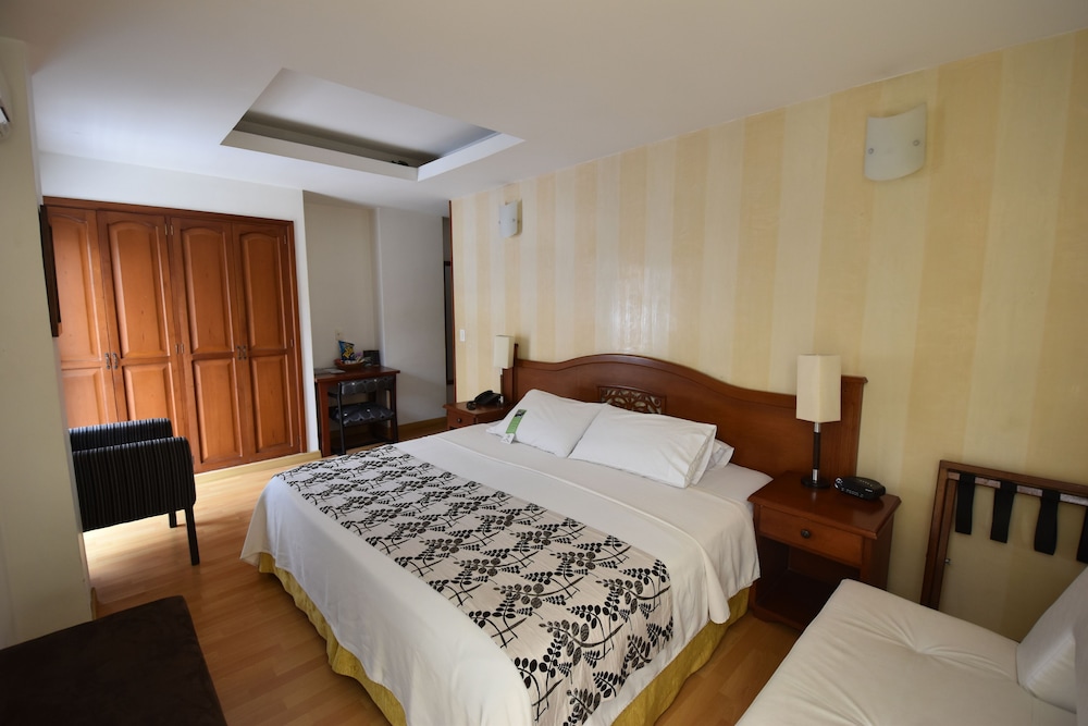 Me siento que nos fue mal: nadie nos subió las maletas, hubo suciedad en el baño, espacio del sanitario muy estrecho e incómodo por un vidrio innecesario, las válvulas de la ducha no funcionan bien, pues no responden inmediato al control de la válvula, el agua sale o muy caliente o helada, siendo pareja sólo asignaron una toalla para ducha (aunque subieron la otra al solicitarla), el gorro de baño no estaba empacado como nuevo sino abierto y doblado evidenciando un uso anterior, se pidió plancha para la ropa y no existía ni en la habitación ni en la Admon., y para rematar en el desayuno trajeron el queso rancio, el que no se pudo cambiar por otro igual pues lo sustituyeron por una tajada comercial de queso mozarella. Agregue que para el alto costo de la noche se ve feo lo limitado del desayuno, como el que se tenga que elegir entre jugo y fruta pues no dan los dos. Para ser objetivo destaco lo único bueno: cama cómoda y buen parqueadero.