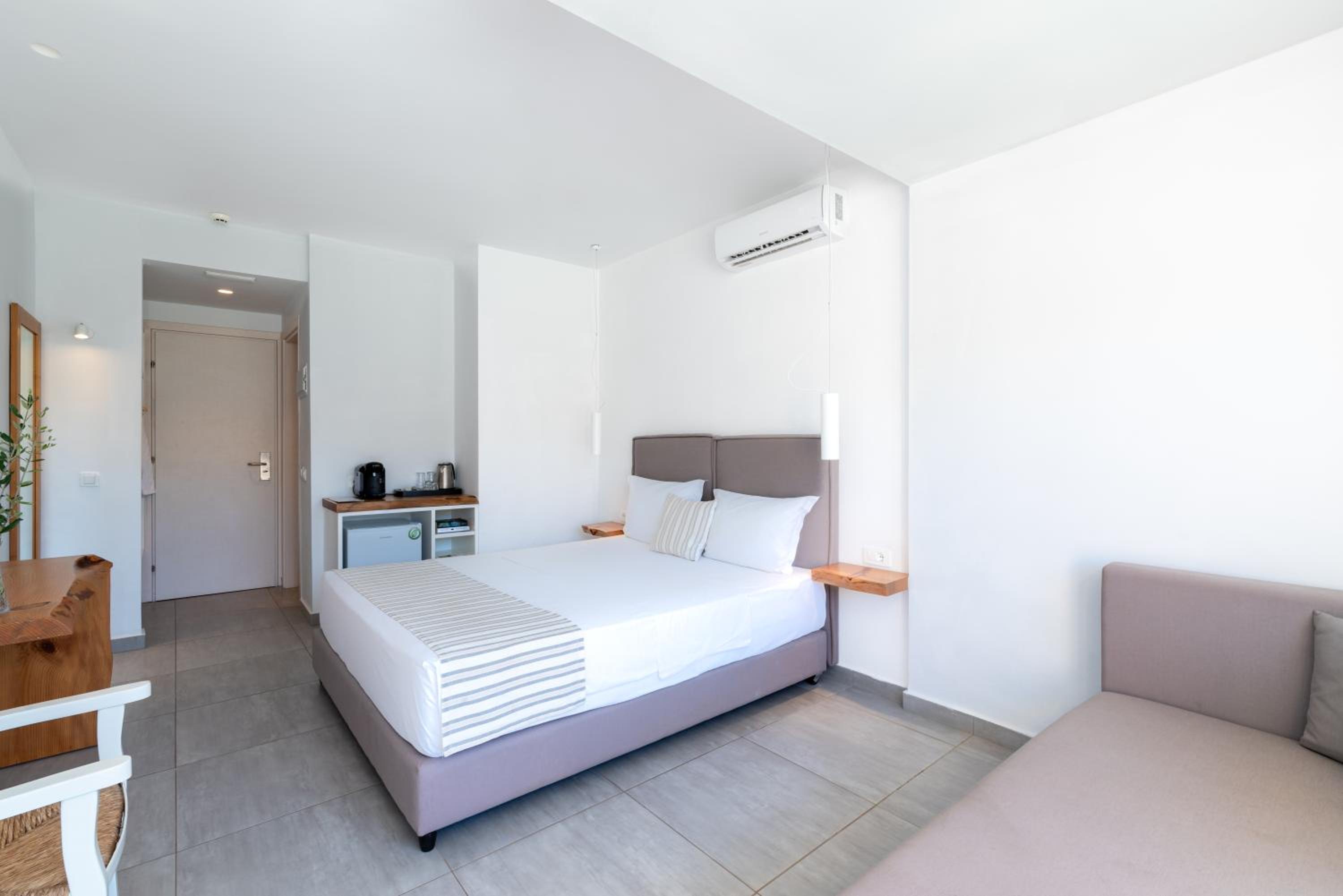 Με το που μπήκαμε στο δωμάτιο, συνειδητοποιήσαμε ότι η τουαλέτα δεν είχε καθαριστεί (φαινόταν ξεκάθαρα χρησιμοποιημένη), γεγονός το οποίο αμέσως μας χάλασε τη διάθεση και τη χαλάρωση για την οποία ελπίζαμε. Σε κάθε κατάλυμα, αλλά πόσο μάλλον σε ένα ξενοδοχείο 4 αστέρων, όπου κάποιος πάει ενα ΣΚ ελπίζοντας να ηρεμήσει, κατι τέτοιο είναι απαράδεκτο. Ενημερώσαμε το προσωπικό, μας ζήτησαν συγνώμη και μας έστειλαν άμεσα κάποιον να καθαρίσει την τουαλέτα. Όσον αφορά το κρεβάτι, αποτελούταν από 2 στρώματα ενωμένα μάλλον καθώς υπήρχε ένα μικρό κενό, πράγμα άβολο. Έπειτα, όταν προσπαθήσαμε να κάνουμε μπάνιο, το νερό ήταν χλιαρό και όχι πολύ ζεστό. Τηλεφωνήσαμε στην υποδοχή και μας συμβουλεψαν να το αφήσουμε να τρεξει λιγη ώρα, αλλά και πάλι καυτό νερο ΔΕΝ ήρθε. Το ίδιο και το επόμενο πρωί που προσπαθήσαμε να κάνουμε ένα ντουζ πριν το check out. Θεωρώ πως τέτοιες καταστάσεις είναι λάθος, ειδικά για ένα ξενοδοχείο το οποίο θεωρητικά πουλάει ποιοτική διαμονη. Ζούμε Κρητη και θελαμε να ξεκουραστούμε ενα ΣΚ από τις δουλειές μας, αλλά η όλη συνθήκη δε το επέτρεψε όπως θα το θελαμε. Στην αναχώρηση, όταν τα ανεφερα όλα αυτα στην κοπέλα της υποδοχής ήταν ευγενεστατη και μου ζήτησε πολλά συγνώμη (παρόλο που πρέπει να τονιστεί ότι προφανώς δεν φταίνε για τις συνθήκες αυτές τα παιδιά που δουλεύουν).