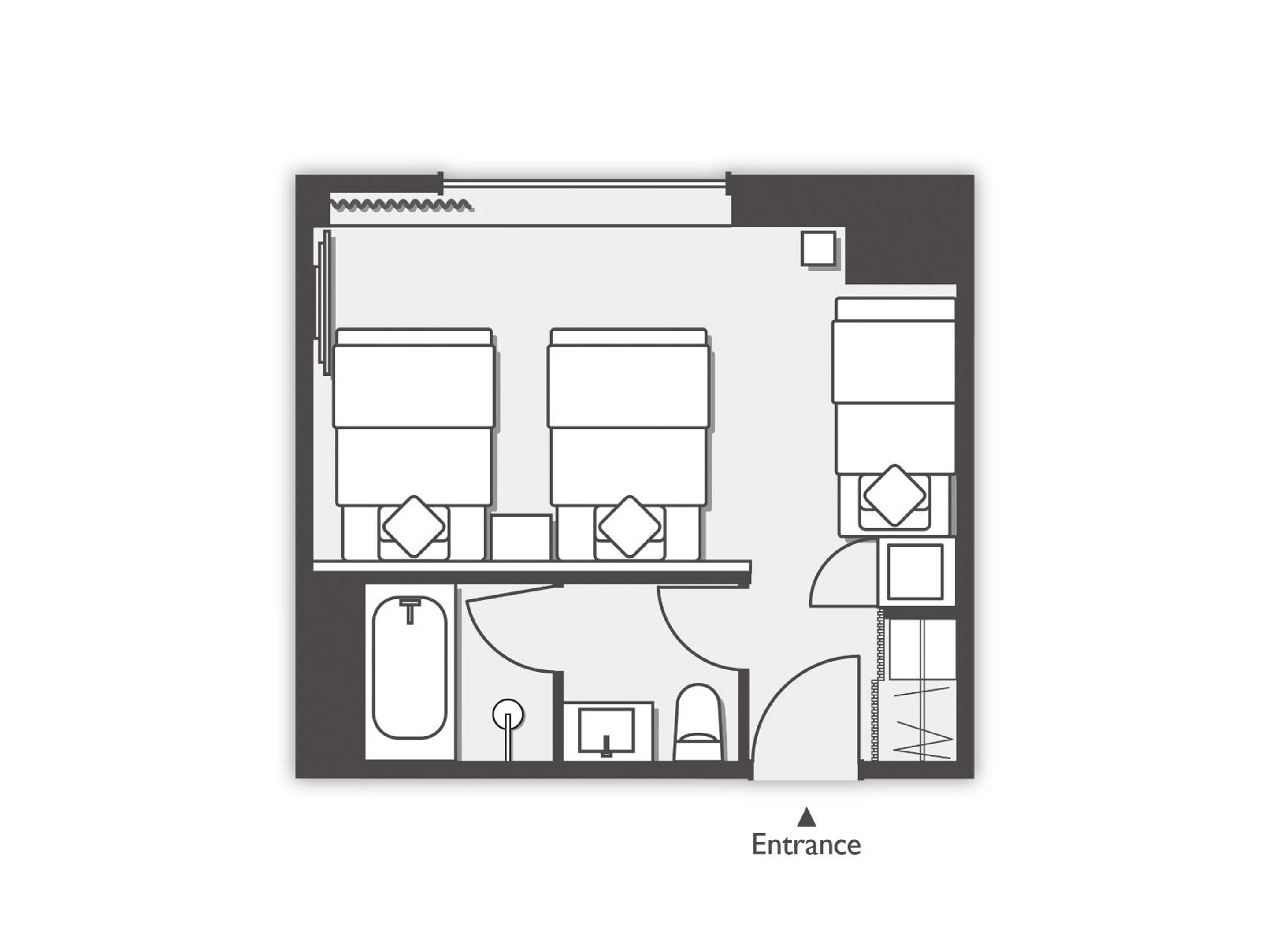 I had a grate stays with my family. Room size is large for 3 adults and 1 child. We have a plenty of space for our luggage.