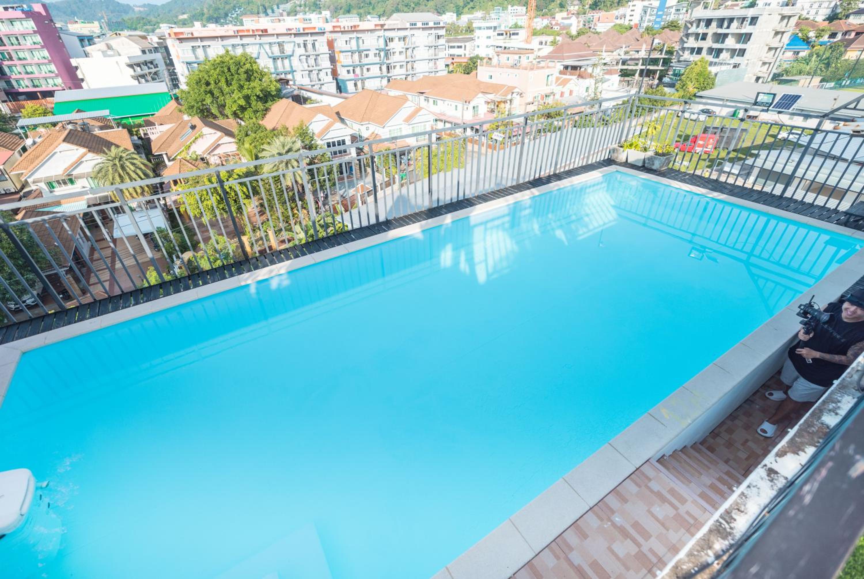 Rooftop Terrace with Outdoor Pool: Enjoy stunning mountain views while relaxing by the outdoor pool on the rooftop terrace at Happy 99 Guest house.