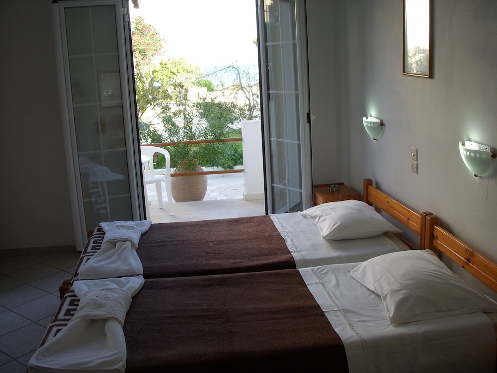 A wonderful holiday in a small, friendly, family run property in a fantastic location on the beach. Situated in the quieter end of Kavos. The owners and staff work hard to ensure their guests are comfortable and the rooms overlook the pool and beach. The food served in their Taverna is also excellent and the best Greek cuisine in all of Kavos. We will definitely return!