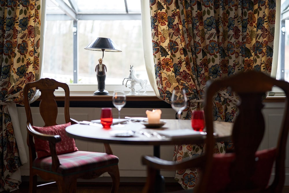 Bodde här med vår hund. Lunchen var ok, inte mkt att välja på. På kvällen åt vi A la Carte. Helt ok. Tyvärr fick vi in fel varmrätt….