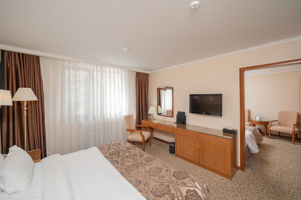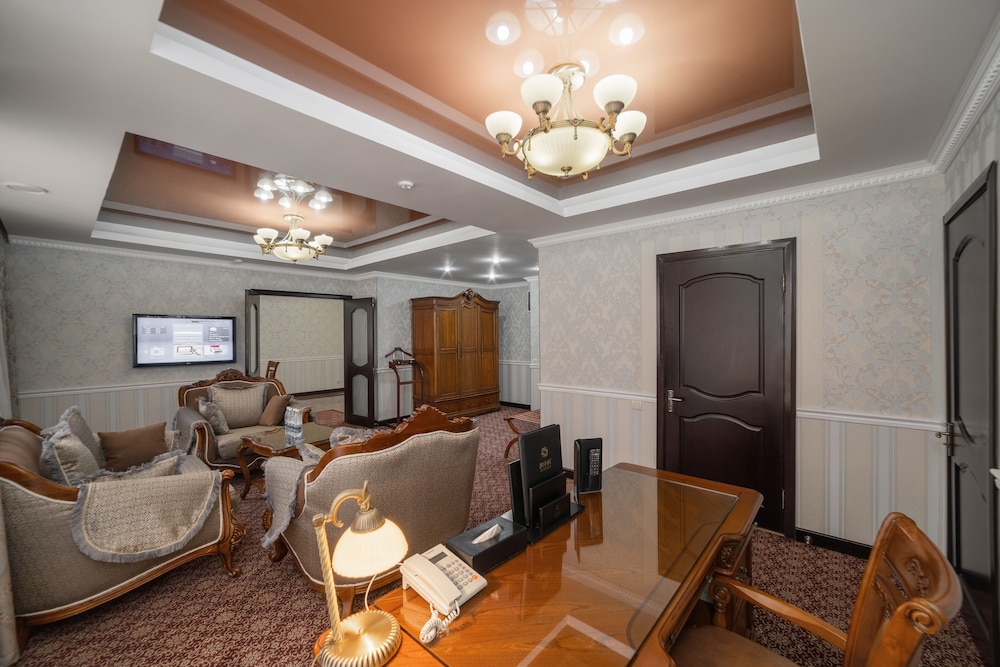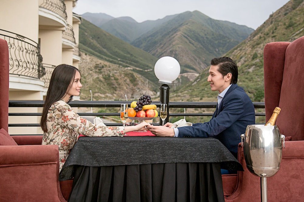 The mountains surrounding the property and the Kyrgyz design elements.