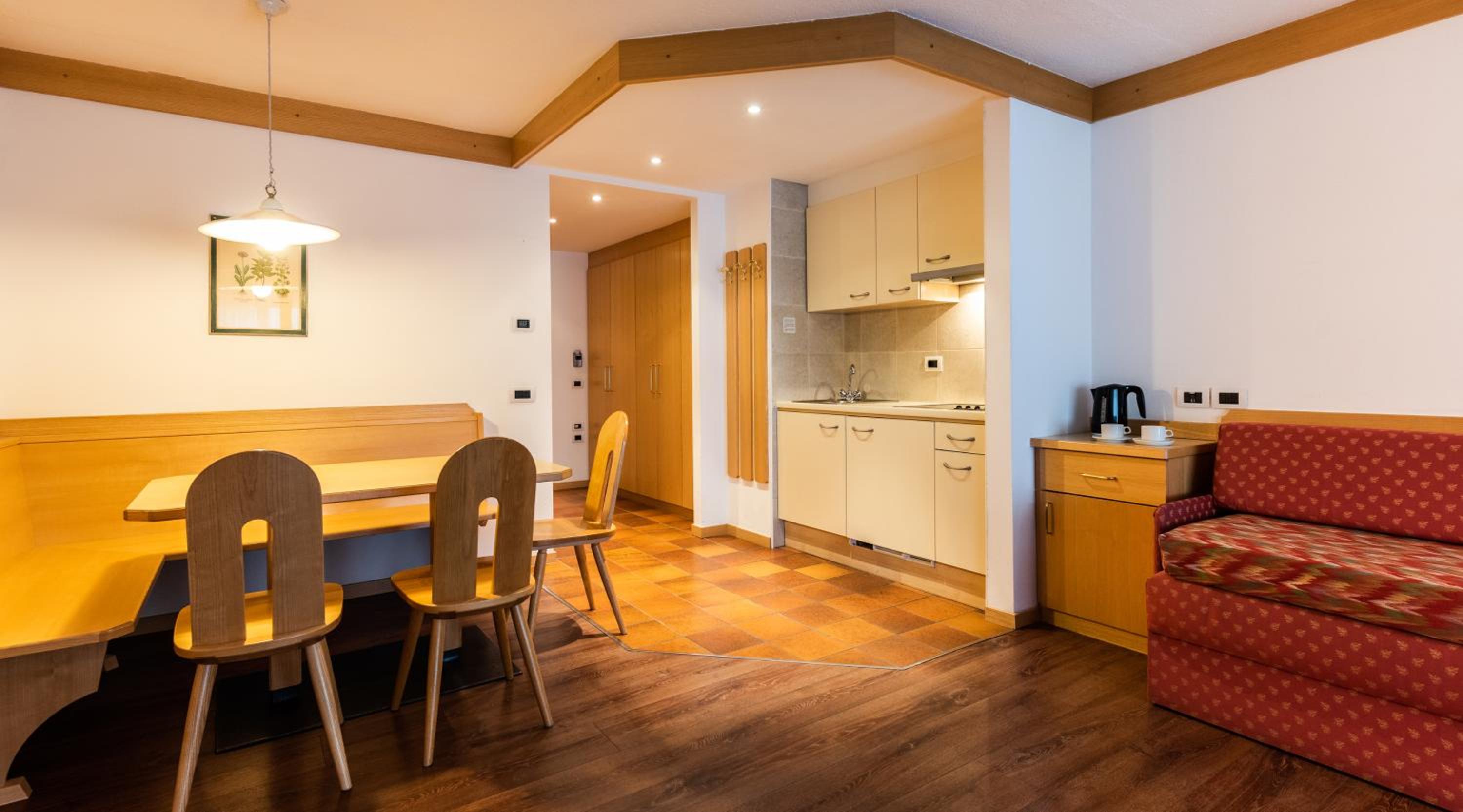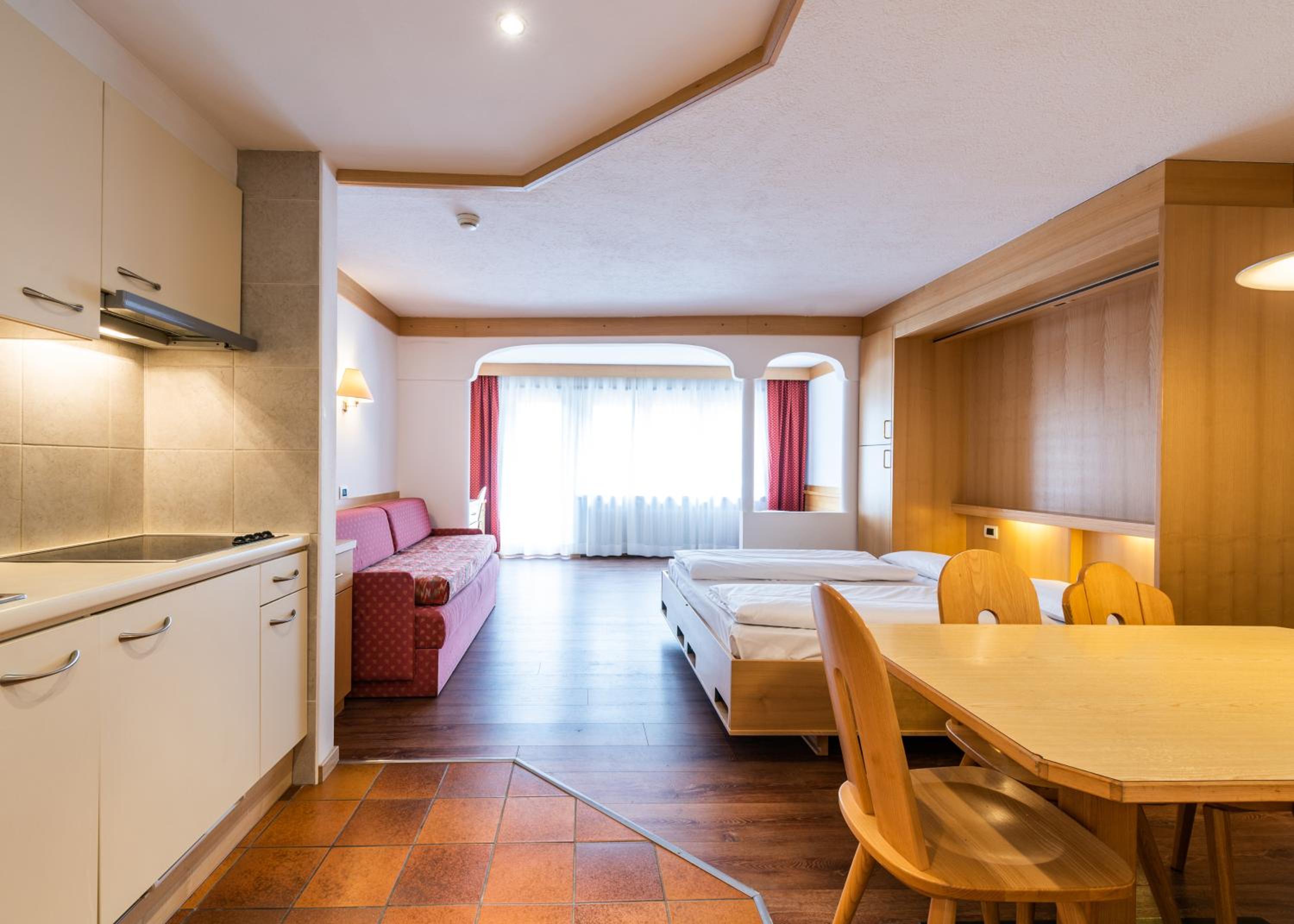 Doskonałe miejsce na pobyt w Val Gardena ! Zarówno sam hotel jak i Residence (czyli apart/studia) są bardzo dobrej jakości. Na miejscu parking w obiekcie, narciarnia z indywidualnymi szafami z suszarką. Dostępny także mały basen, spa, masaże i siłownia. Tuż za budynkiem duży supermarket -a wyjście z obiektu bezpośrednio przez ogród. Studio jakie mieliśmy było kompaktowe i doskonale wyposażone we wszystko co potrzebne.
