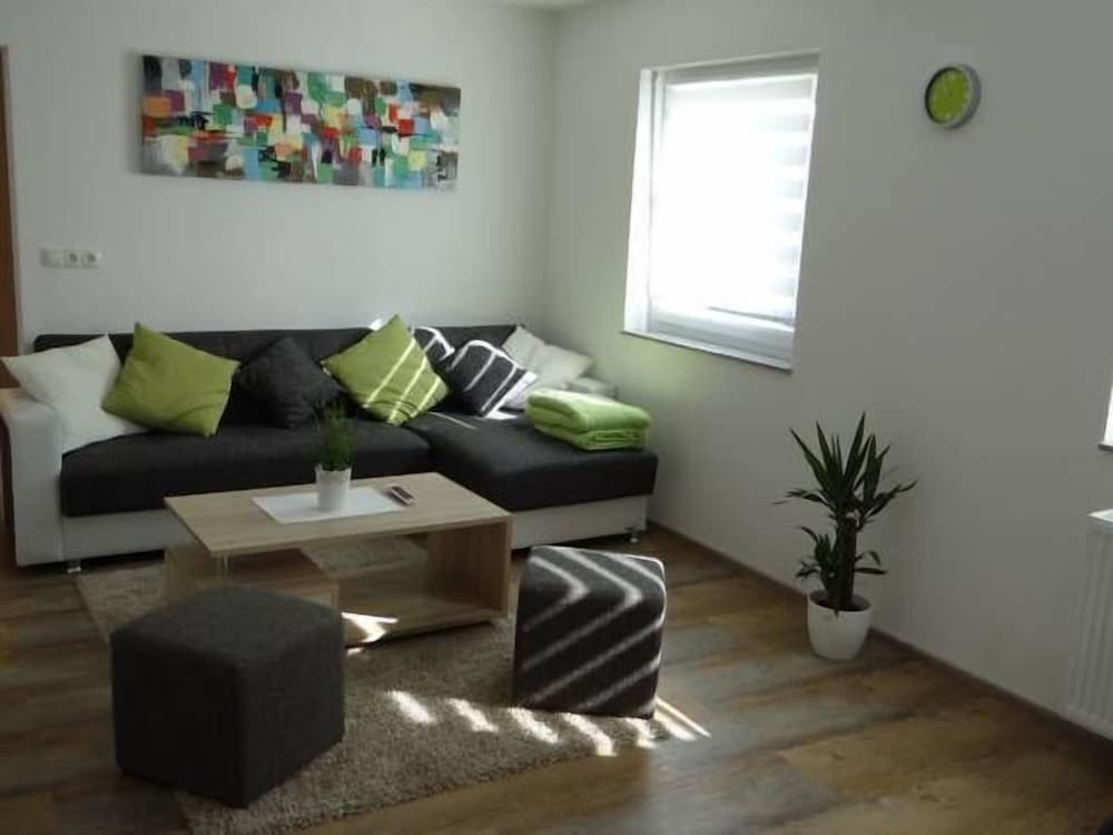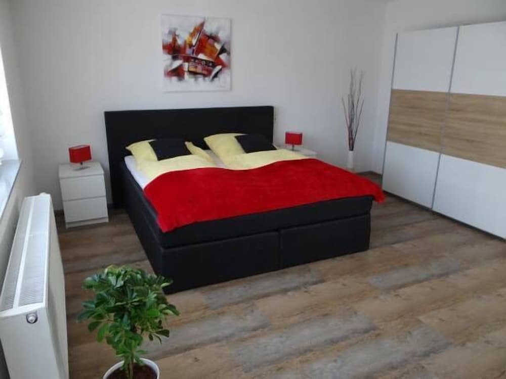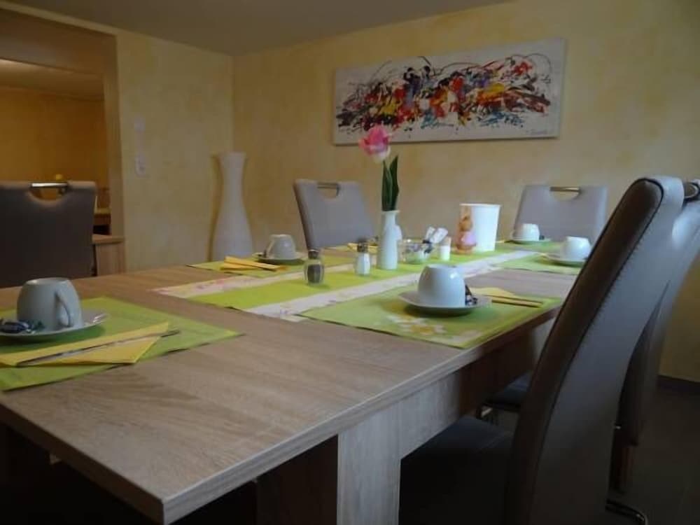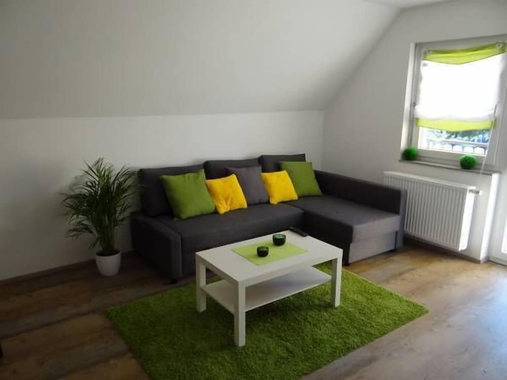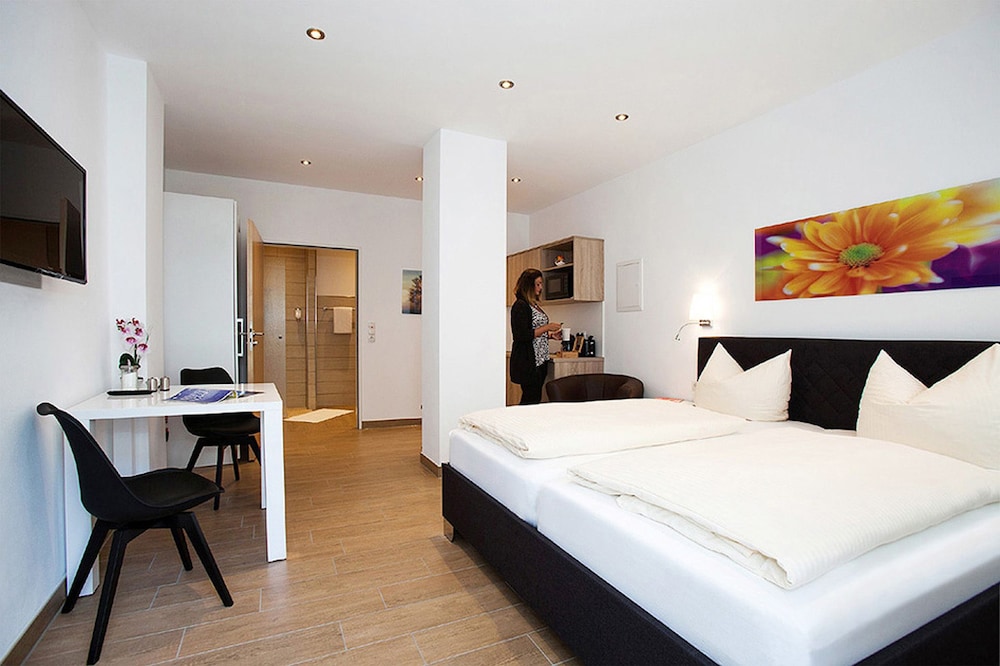 Chambre sympa, propre et grande. Sous le toit d'une maison d'hôte. Le petit frigo est un plus, par contre, il manque un chauffe eau pour réchauffer le biberon de bébé. Il est possible de se rendre à pieds à Europapark, ce n'est pas loin du tout.
