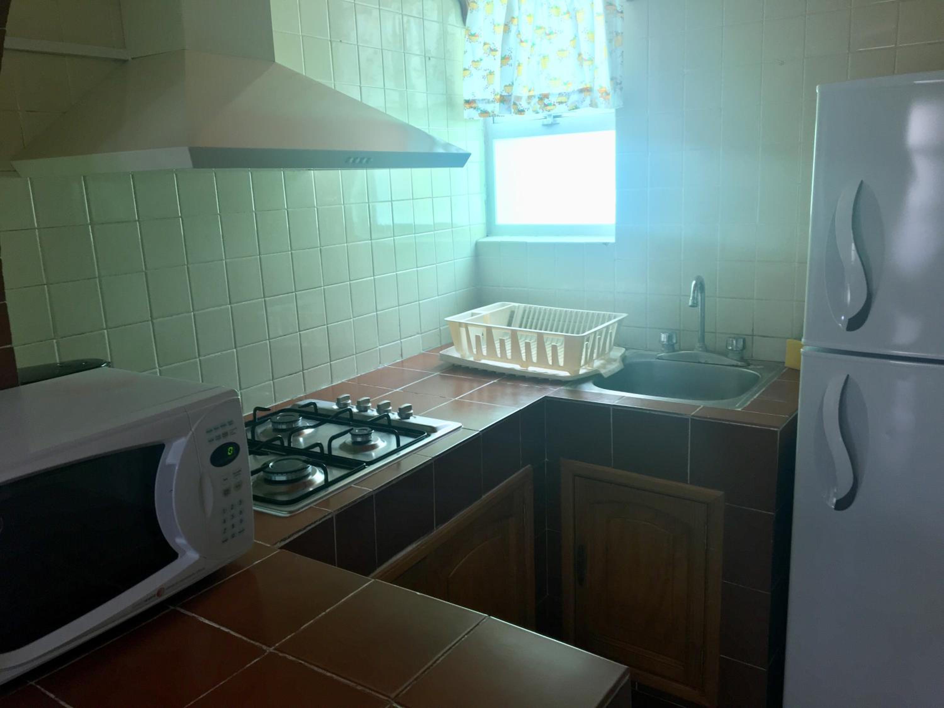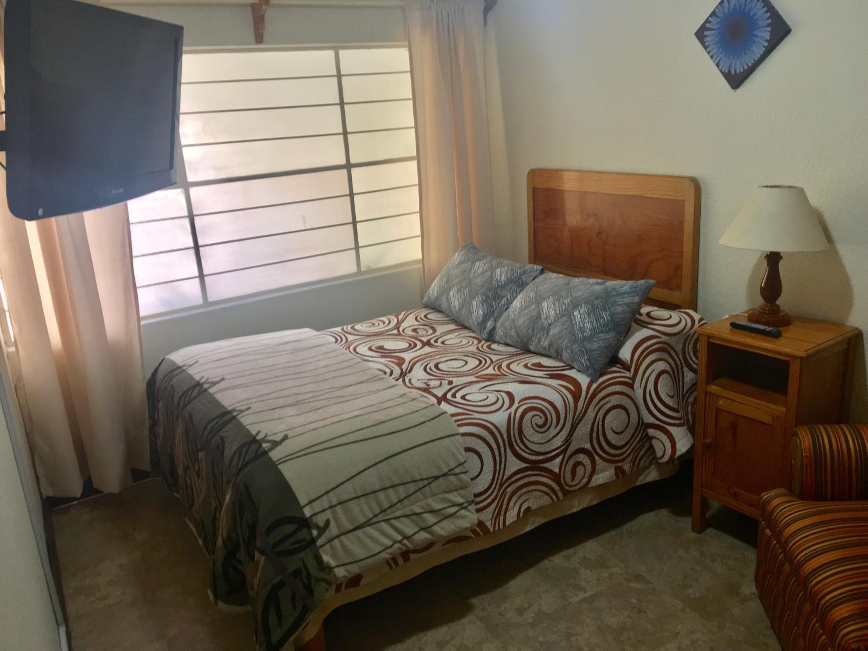 Enjoy a comfortable stay with modern amenities like a cable flat-screen TV and a fully equipped kitchen with a microwave. The private bathroom with a shower and hair dryer adds a touch of luxury to your experience.