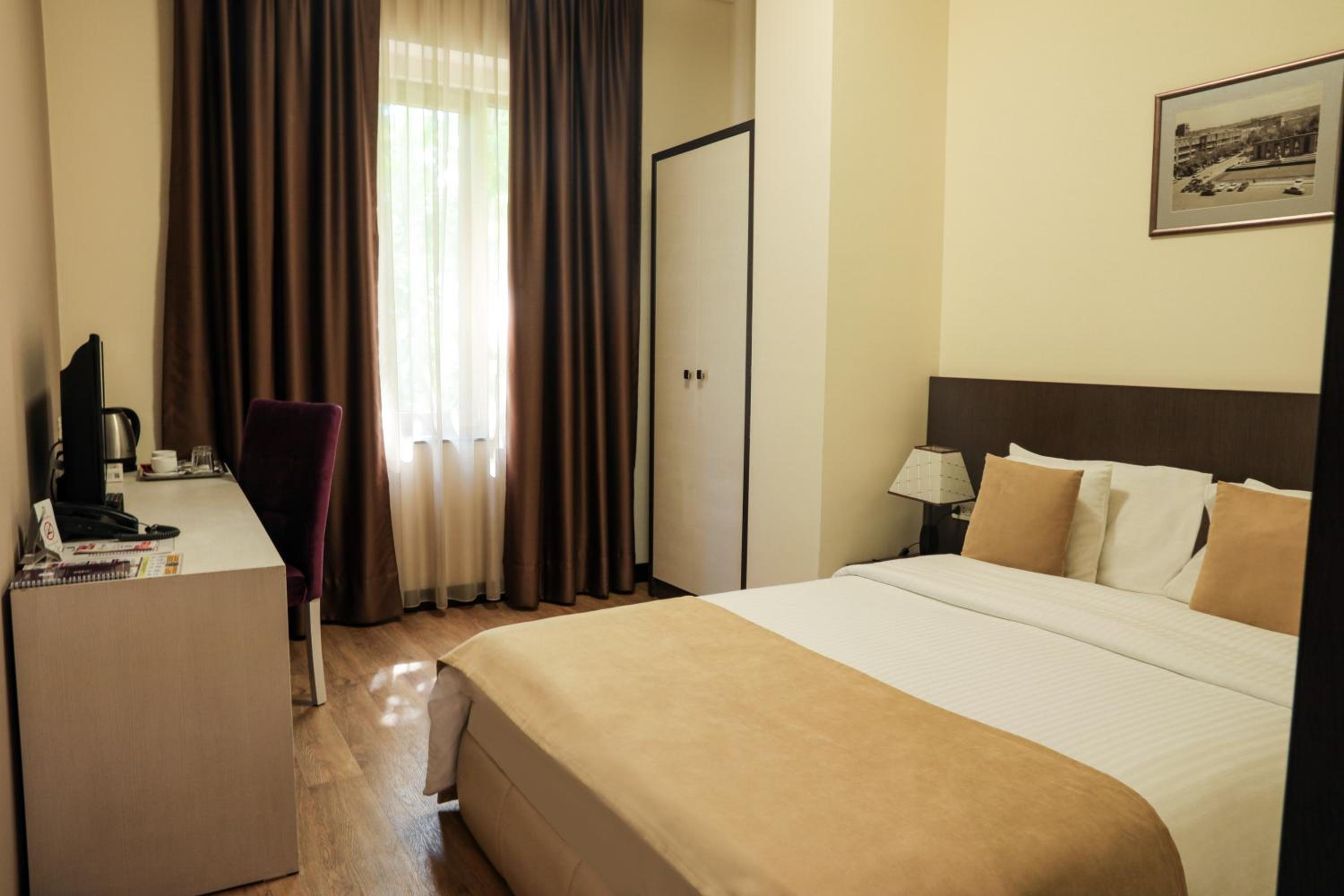 The hotel is very quiet, centrally located, everything is at a walking distance. Rooms are spacious, clean. Breakfasts were excellent, with some variety from day to day. The personnel was very warm, helpful and friendly! Special thanks to Samvel at reception who dealt with our every request with patience and care!