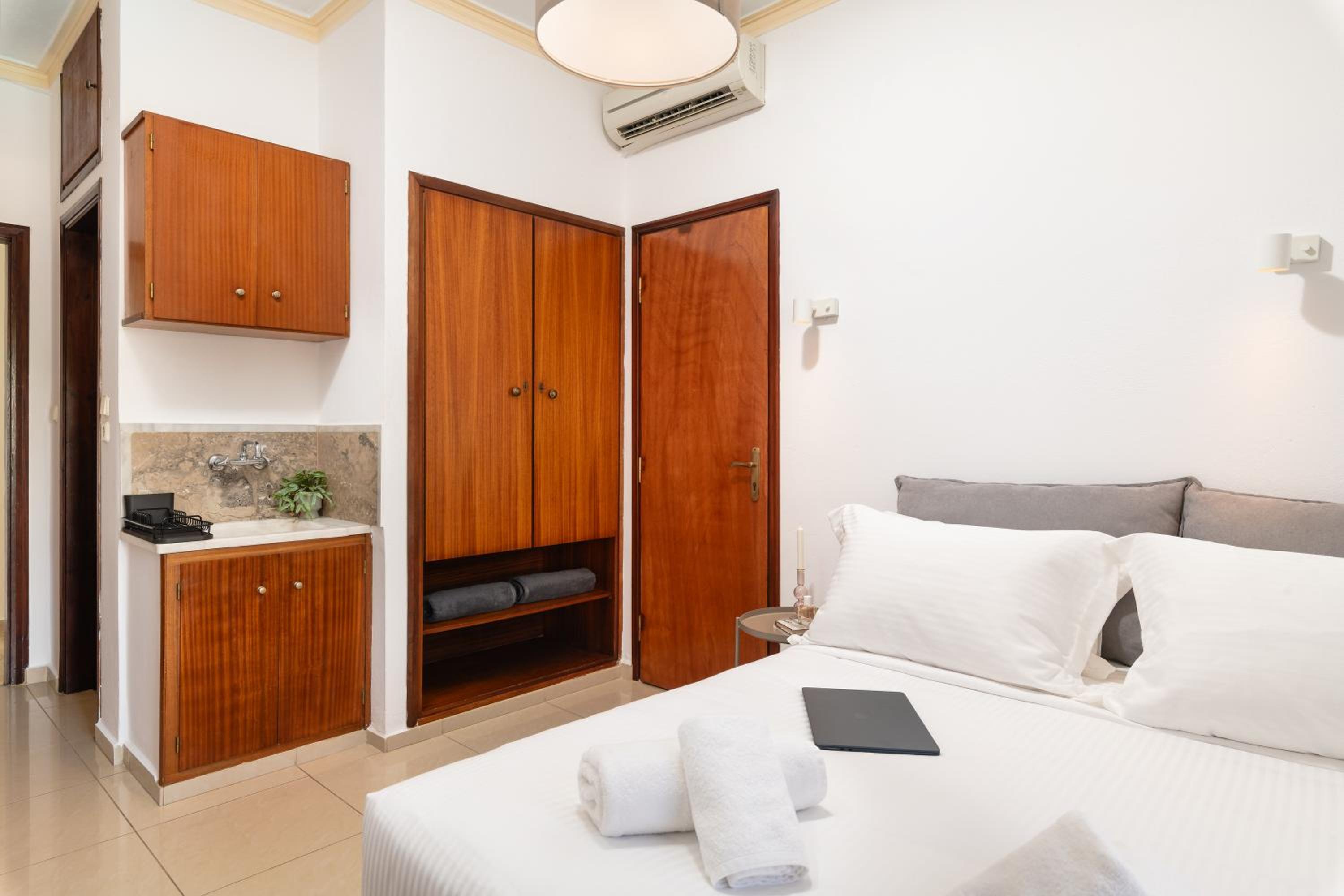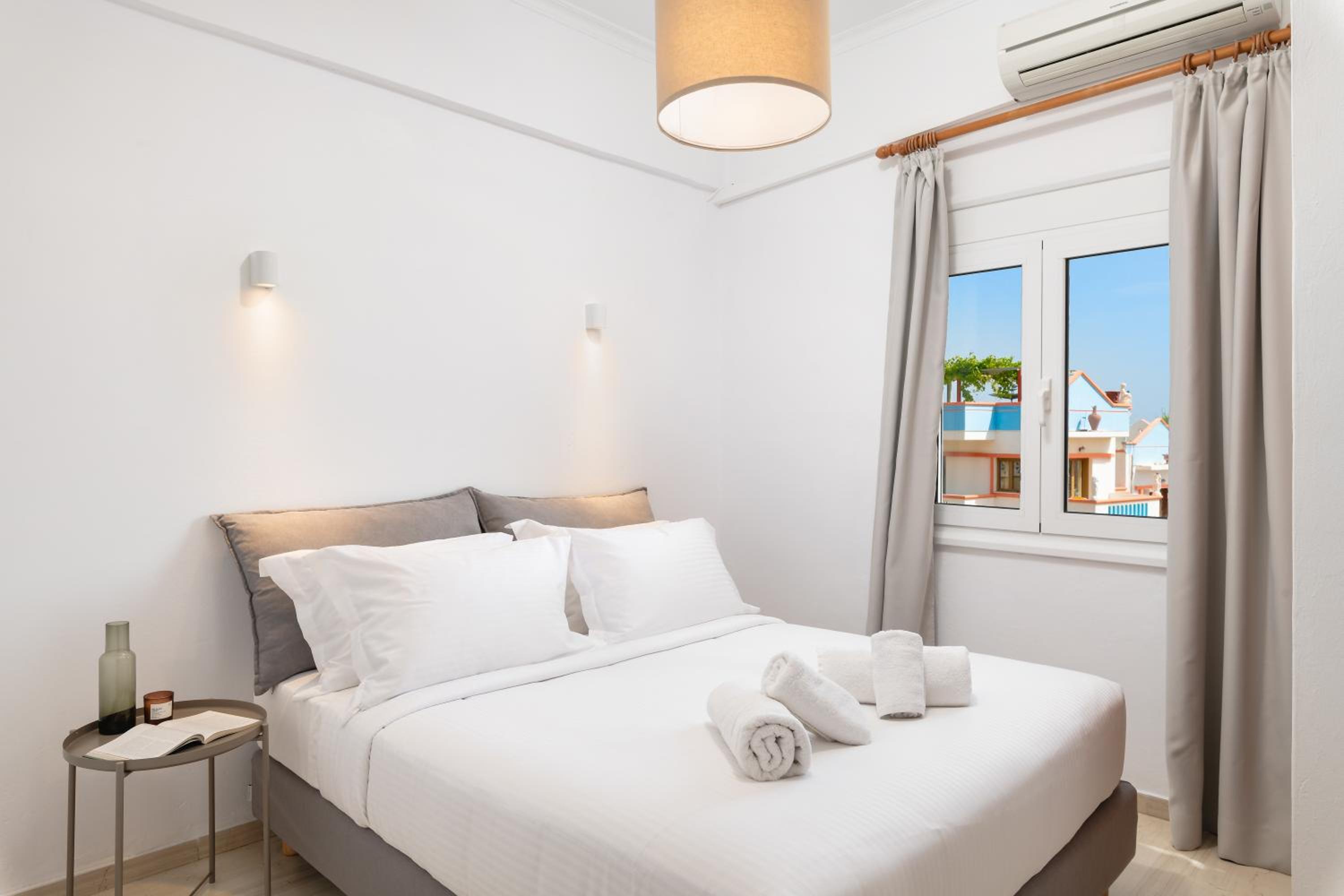 In short, everything was very nice. Everything was very clean, the staff was extremely friendly and they had some stuff you could borrow for free to take with you to the beach( umbrellas, swimming goggles, etc.). We had free coffee and tea in our room and they even upgraded our room for free(to a one bedroom apartment). The location is very good too. The beach that's just across the street was the best we found in Agia Marina. They're also right next to a car rental place( which we actually rented a car from and had a very good experience with them too). 10/10, we'll come back for sure