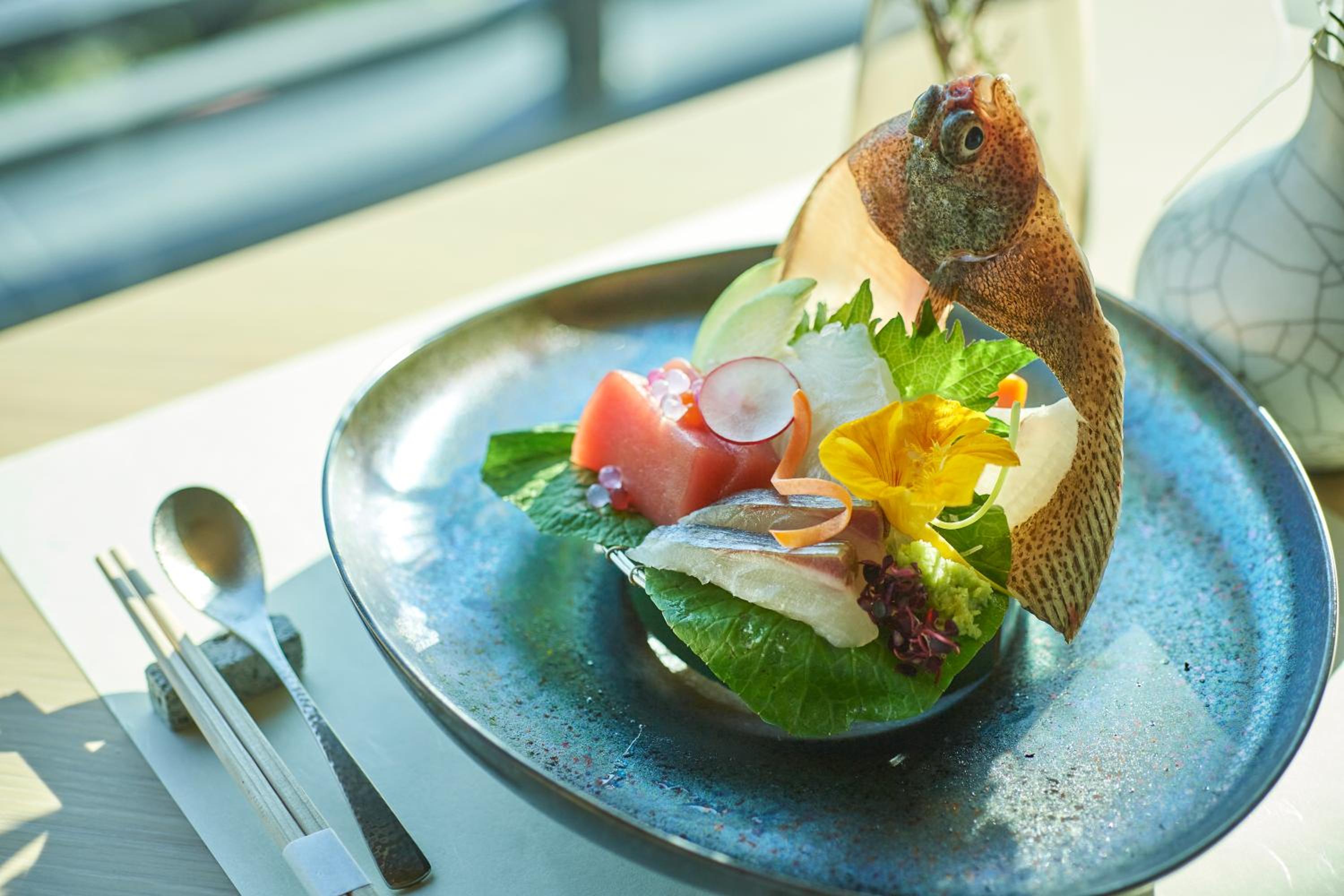五樓客房的景色。使用在地食材、精緻設計的餐食。