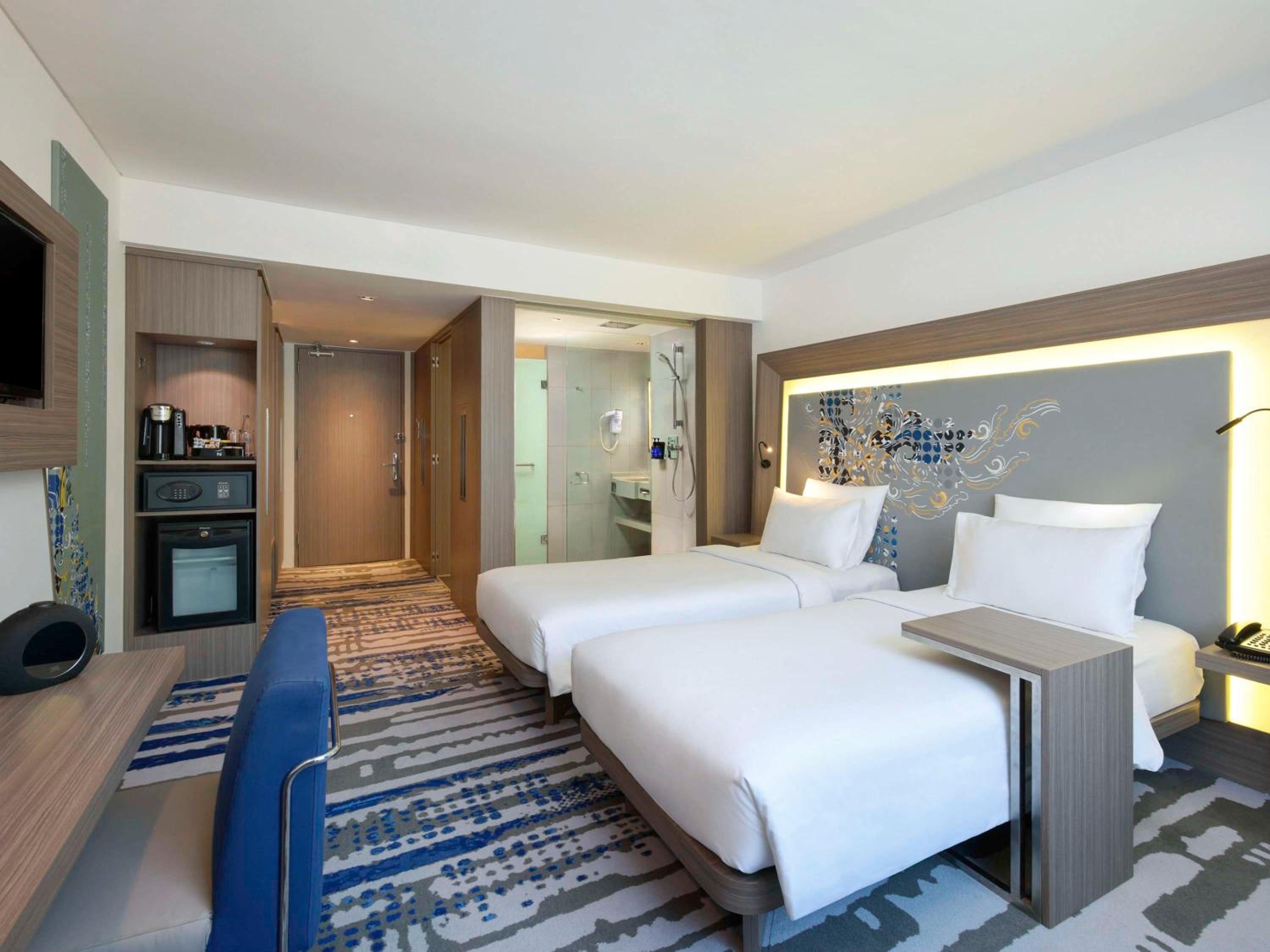 Novotel Bali Ngurah Rai Airport offers modern rooms with air conditioning, flat-screen TVs, and safety deposit boxes. Some rooms even feature sofa beds and work areas for added convenience. The private bathrooms are equipped with showers and complimentary amenities, along with cozy slippers and bathrobes for extra comfort.