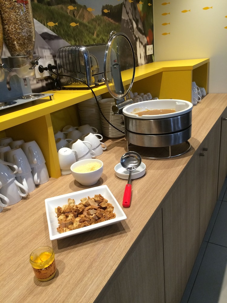 Peu de place pour se garer sur le parking mais il y a de la place dans la rue d'à coté. Le Lidl en face pratique pour manger un truc rapide le soir et accès à une plage en 2min. Le petit déj est correct même si la salle est un peu petite et qu'il manque souvent des choses dans le buffet.