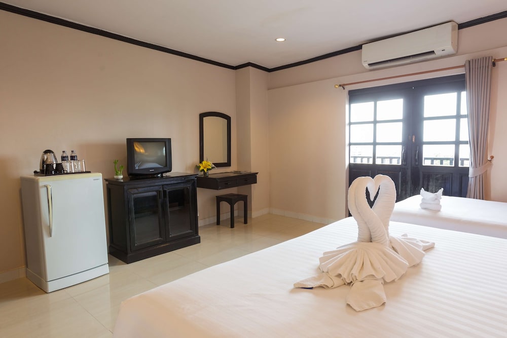 Our faculty and teaching staff used your service last week. Although the hotel seemed quite old, all rooms were clean, ample and convenient. The service was very great. The hotel manager (K.Aom) was so attentive. The price of each room which consists of breakfast was so impressive. However, one main aspect that we need you to improve is about the air conditioner in the lobby area which was very hot.