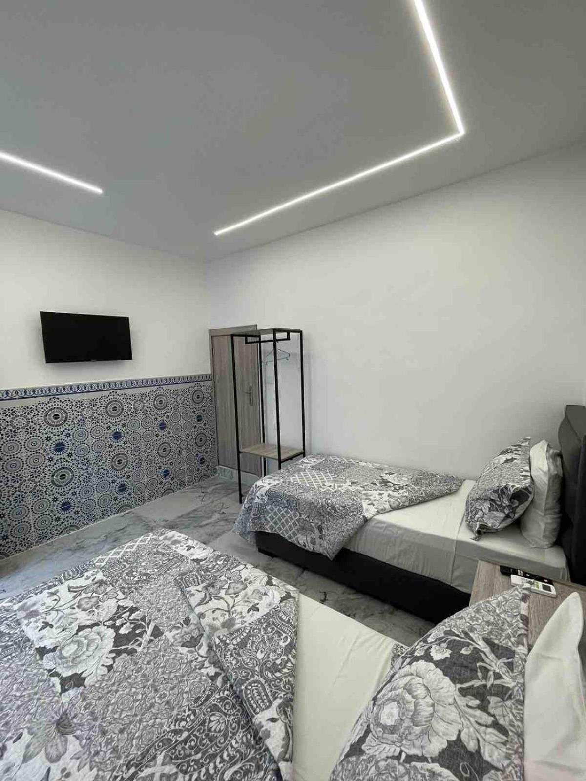 W drugim pokoju dostałem łóżko bez 2 nóżek, przez co mogłem spać albo na odwrót albo głową w dół ;D Kuriozum! W zamian mogłem dostać pokój bez okna, w którym łóżko miało o jedną nogę więcej. tzn. 3 :DD. Pod prysznicem poza sobą można było od razu umyć kibel albo drzwi wejściowe. Brak haczyka czy półki na rzeczy, sprawił że trzeba było je trzymać na zewnątrz, a łazienka była na korytarzu -> trzeba było mieć kogoś do pilnowania tych rzeczy! ;D W pewnym momencie zorientowaliśmy się też, że w naszym pokoju jest kot i nie bardzo byliśmy pewni czy nie było go tam od początku. Pokój od ulicy, ale na szczęście po 22 już nie trąbią z byle powodu i tak do 7 nad ranem...
