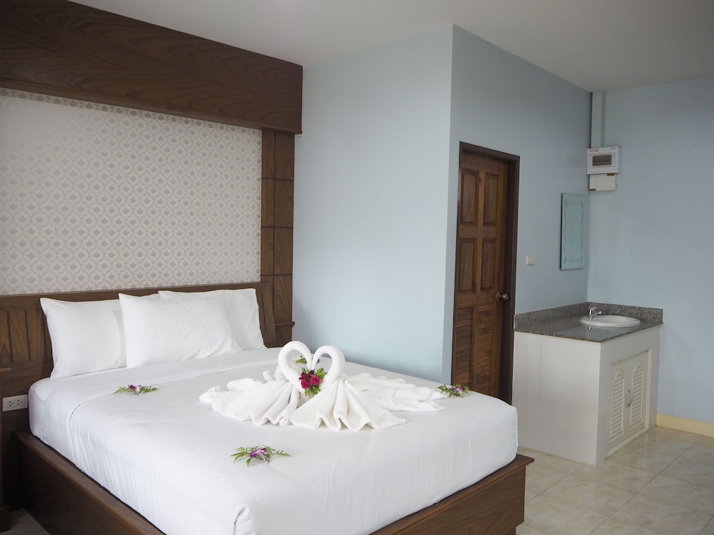 Отель новый, номера чистые, есть все что надо, кроме чайника. До пляжа 400 метров, магазин 7-11 прямо напротив через дорогу, с противоположной стороны отель упирается в гору поэтому тихо и спокойно. Отстроенная часть территории зеленая, украшенная цветами, с другой стороны на территории стройка, но не мешает, т.к. техники нет - все вручную. Строят то ли новый корпус, то ли вообще бассейн.