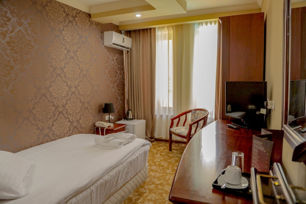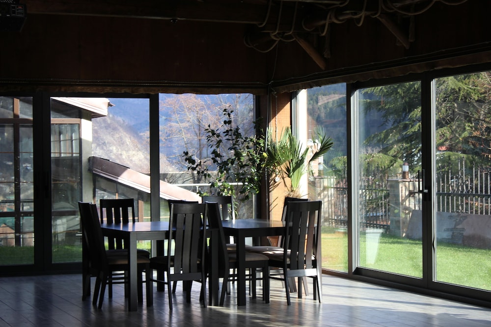 Rooms were very comfortable if rather small. Good bathroom with nice shower. Lovely setting overlooking the town with nice dining room balcony to sit out on. The dinner was buffet style - ok but definitely catered to the Russian, Asian and Caucasus travelers with indifferent fish and meat dishes. The dining room was very Soviet in style - and the staff to match. Enjoyed the sax and piano player at dinner playing some Georgian and old classics tunes. Breakfast was actually very good with excellent coffee. Probably the best place to stay in Borjomi but would question its four status.