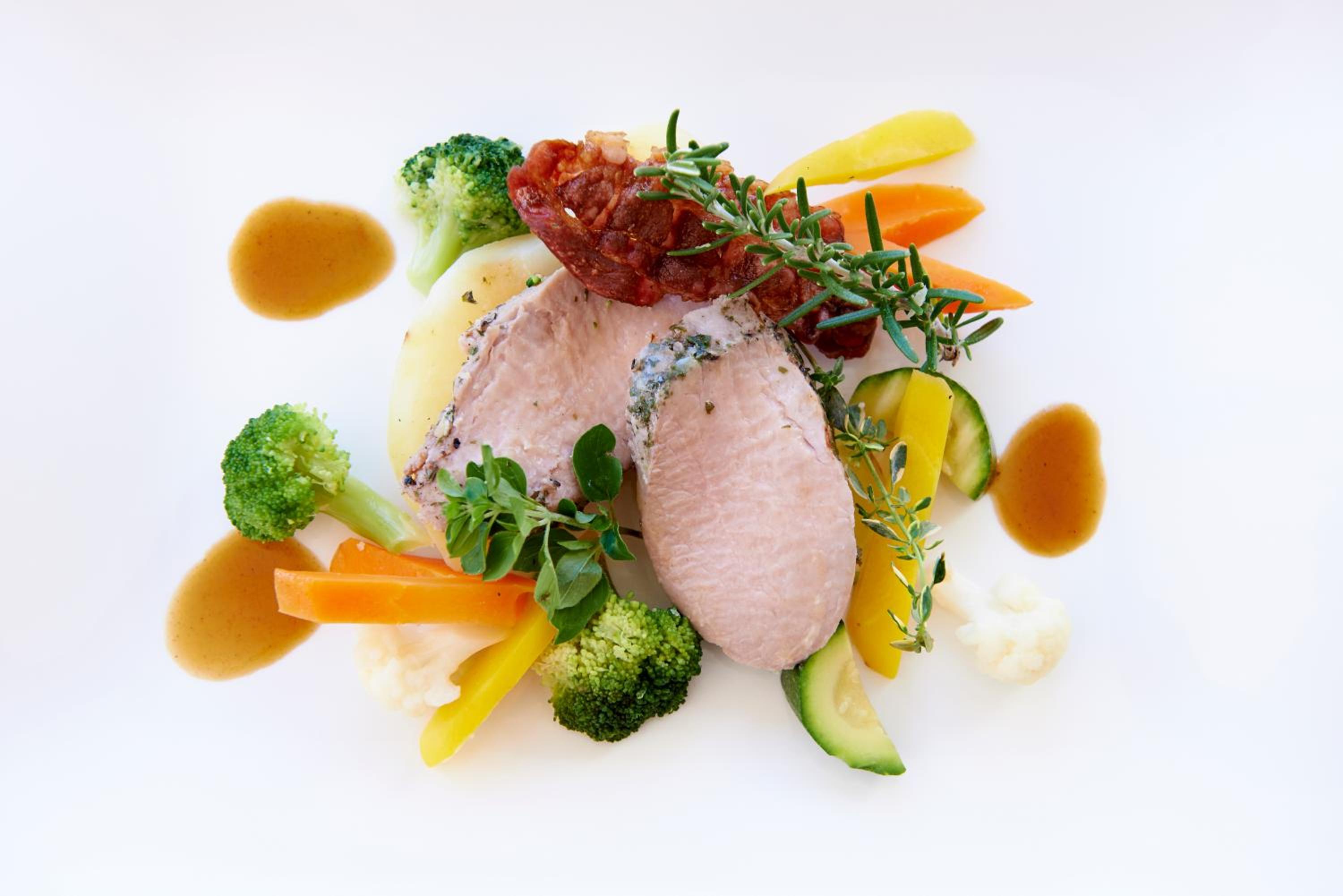 Das Abendessen ist fein und schön angerichtet, eher kleine Portion der Hauptspeise, ohne Suppe/Salat hätten wir wohl noch Hunger gehabt