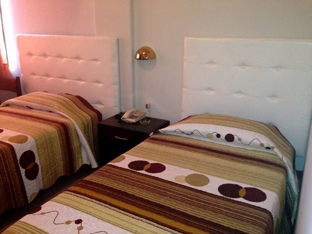 Albergo molto essenziale, stanza con poca luce.