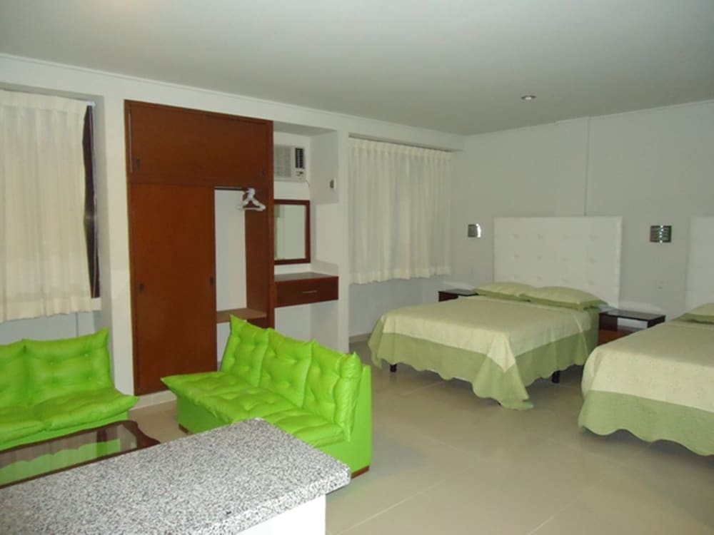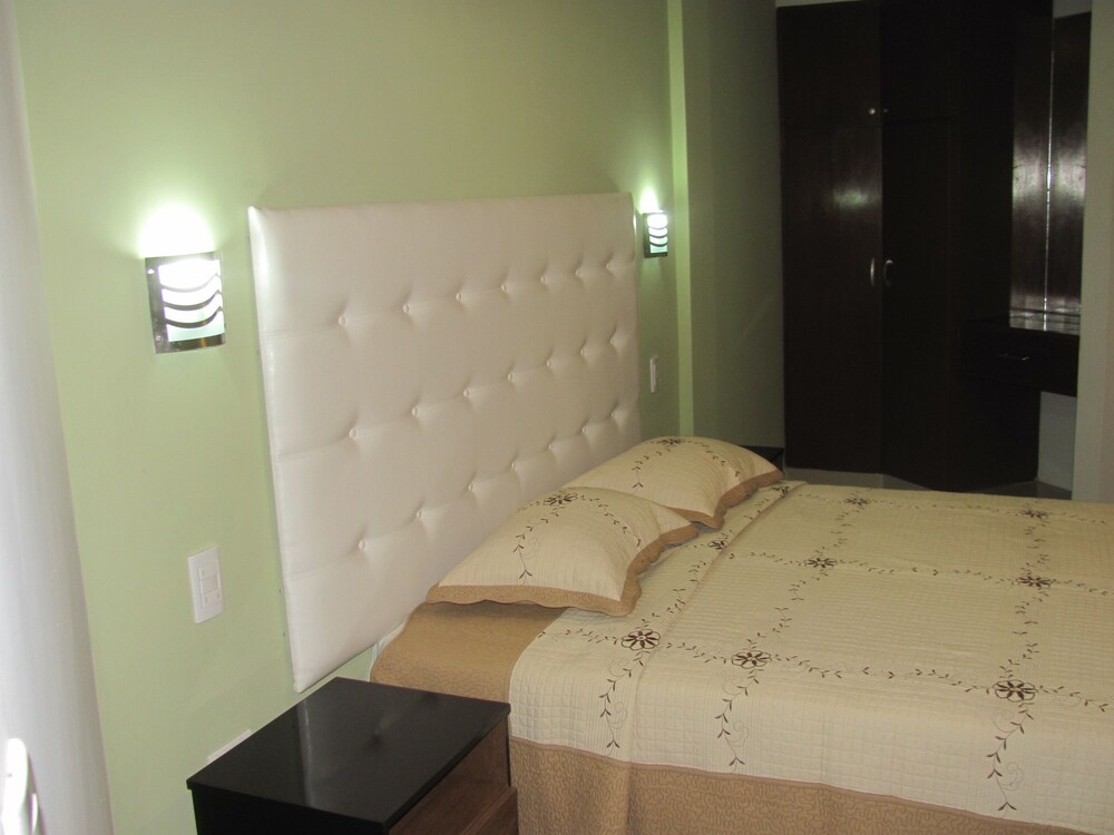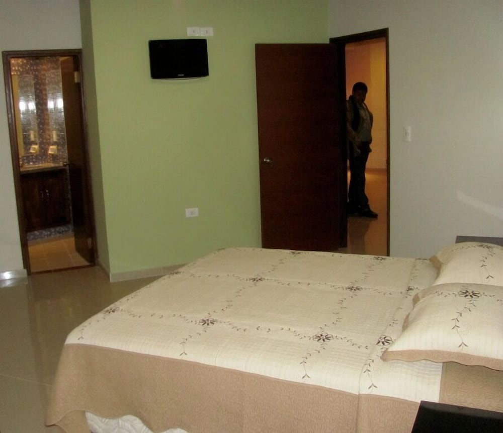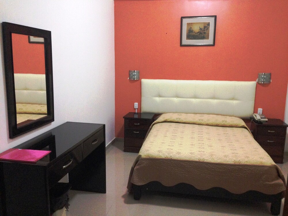 The hotel is about 8 or 9 blocks from main plaza area. It is clean, no English spoken at front desk though, but we got by.