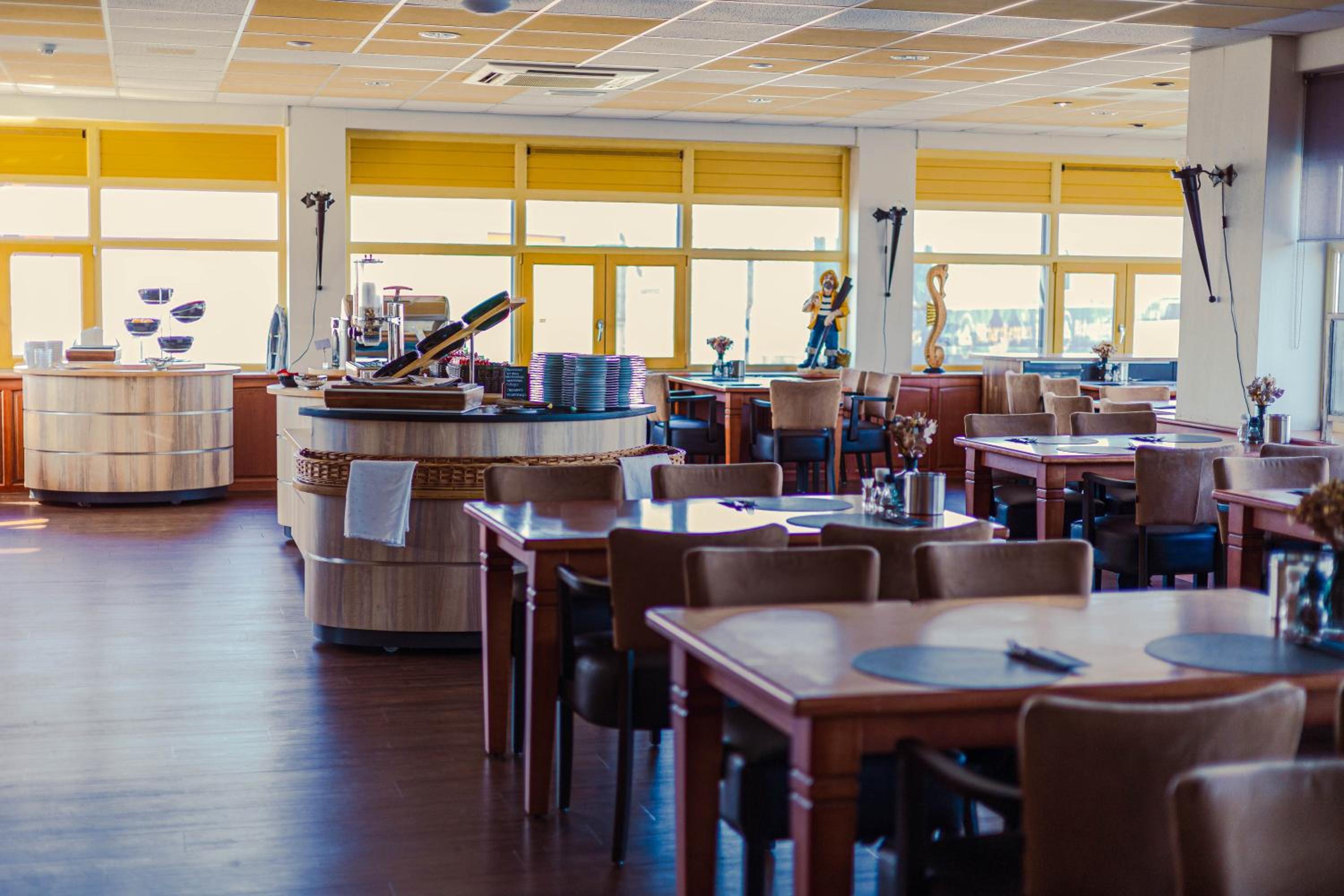 Ontbijt was prima en redelijk uitgebreid, met een mooi uitzicht over de bedrijvigheid van de haven