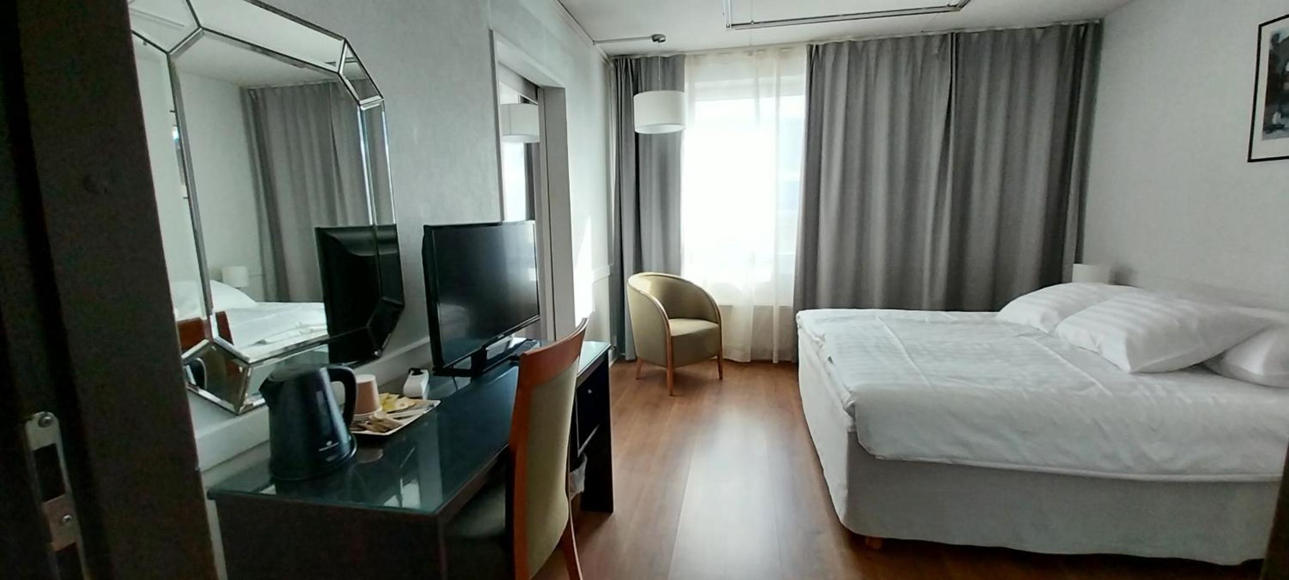 Hea asukoht. Parkimine hotelli all parklas. Parkla lagi madal ~ 1,95m, aga VW buss mahtus kenasti ära. Vaikne ja rahulik. Mugav voodi ja värsked linad, hea uni. Mitmekesine hommikusöök.