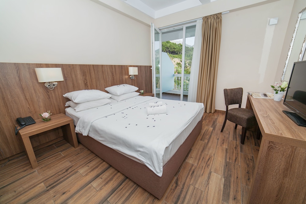 Hotel located in the center of Sutomore, close to railway and bus station. Room was clean and basically equipped. Lack of shampoo in bathroom, only liquid soap in distributors on the wall. The breakfasts very poor, nothing sweet and after 9p.m. we had to ask waiters to get a plate, knife and fork. If you wand to eat the breakfast in this hotel you must get up early. The receptionist offered us also dinner but after the first breakfast we choosed another restaurant, there are many cheap and really very good in nearby.