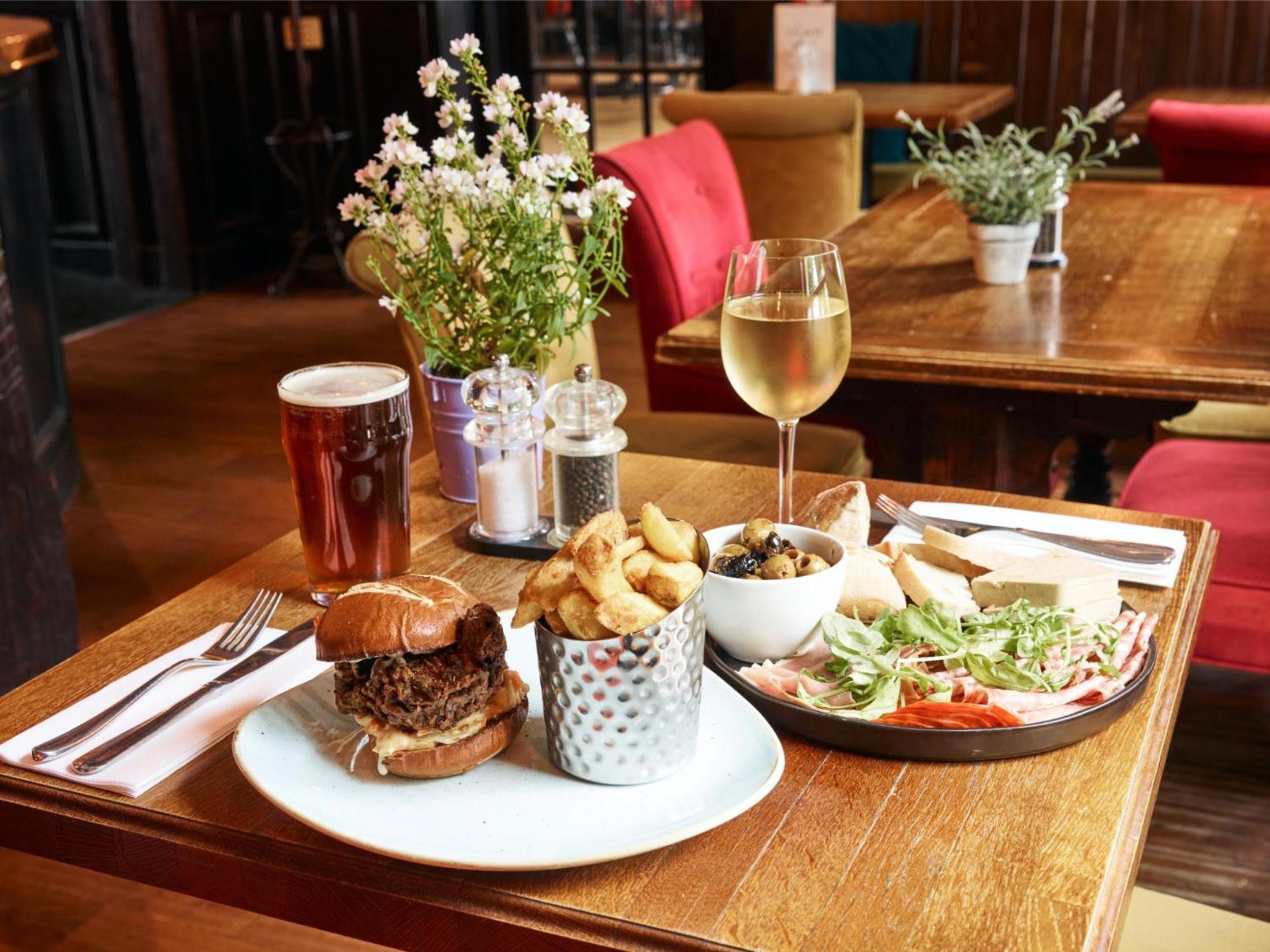 Award-Winning Dining: Indulge in a modern British menu at the impressive restaurant overlooking the Champagne terrace, or relax in the cosy bar with log fires and a wide drink selection.