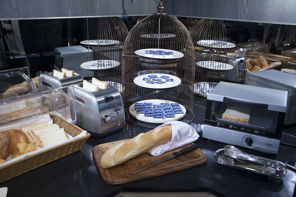 早餐樣式不多,口味尚可;浴室熱水加熱速度稍慢;離捷運站有一點距離。