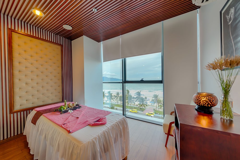 Had a one week stay at this hotel in a corner suite. The views were amazing--especially from the soaker bathtub. The room was huge and the bed was very comfortable. We enjoyed the buffet breakfast with loads of both Western and Vietnamese options. The staff were very attentive and made sure to check in with us to ensure we enjoyed our stay. The location is excellent with the beach directly across the street. It was also within walking distance to the Dragon Bridge and lots of restaurants. The airport shuttle was a nice bonus and they even gave us a parting gift at checkout! Would definitely stay here again.
