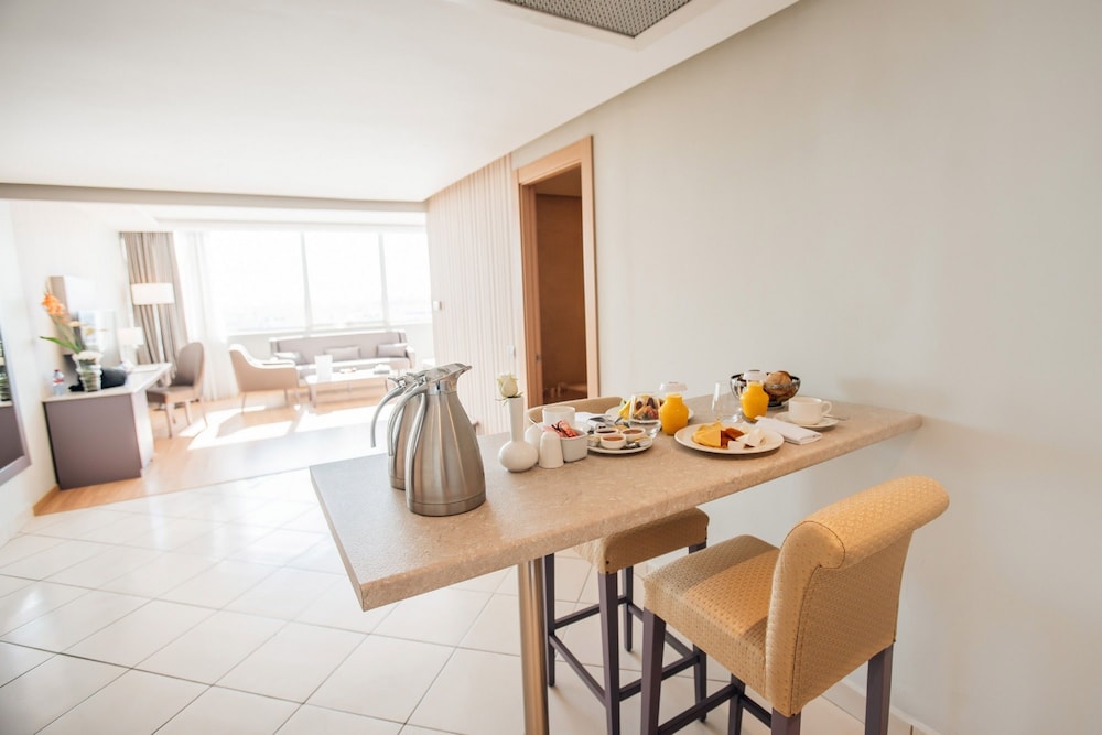 Staff didn’t come to the room twice when they said they would send someone to retrieve the bags from the car and to bring the luggage cart. Biggest con is the price of breakfast 200Dhm for a small selection of food items at their breakfast Buffett.