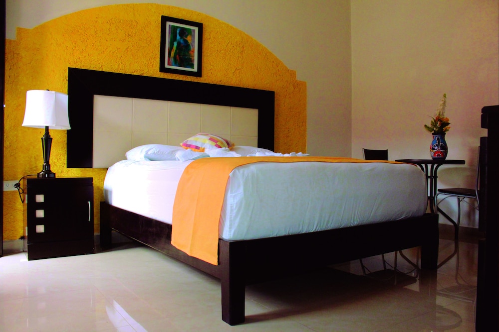 Lovely little Mexican style hotel. It was ver comfortable and fairly quiet. We stayed in a suite that had a king bed, a couch, fridge and a coffee maker. There was a garden in the court yard with a pomello tree with fruit! We really enjoyed our stay.