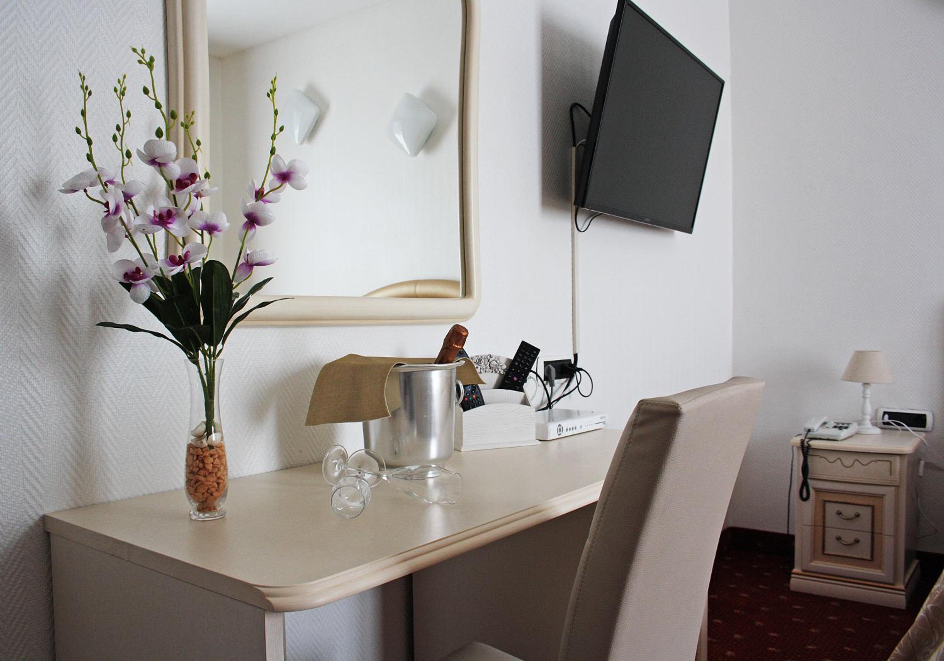 Enjoy a relaxing stay in our air-conditioned rooms with complimentary minibar. The classic decor, flat-screen TV with Sky channels, and cozy amenities provide a comfortable retreat.