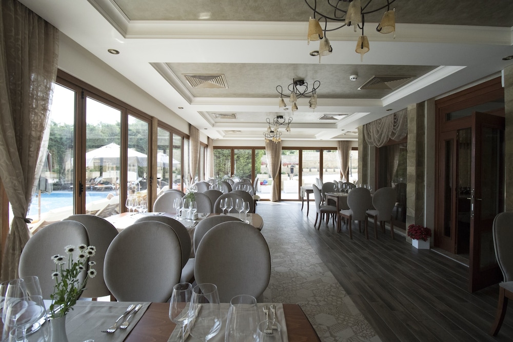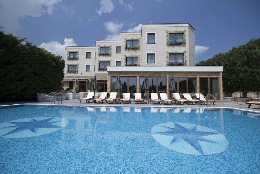 Nice hotel with pleasant decor. Has had a major upgrade, as presumably, originally built as a luxury establishment in the communist era, in which times some of the staff are still living. You need a car or use public transport to get to the beach. It is close to the main road which you can hear in the pool area.
