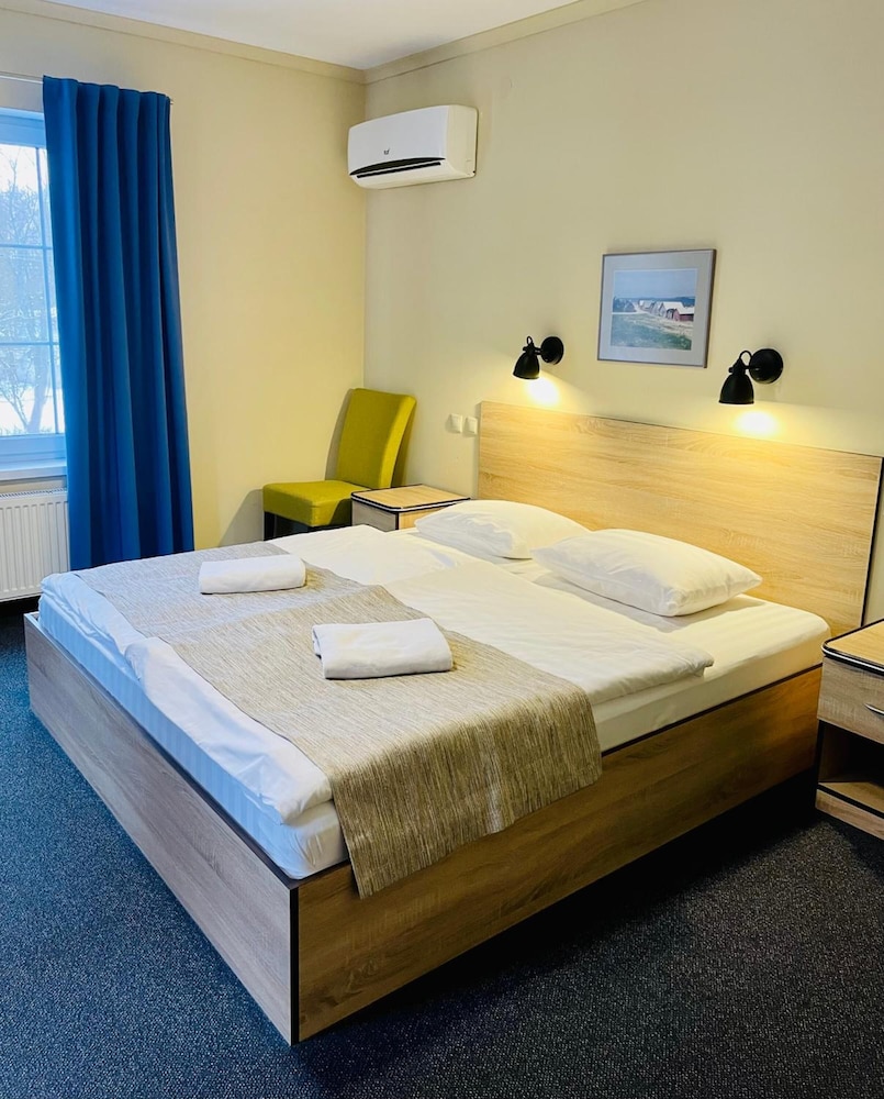 Отель новый, очень симпатичный, расположен в тихом месте. Есть маленькая парковка. Рядом железная дорога, но она нам не мешала - ночью поезда не ходят. Есть сауна, место для барбекю, велосипеды на прокат, но мы не пользовались - были всего 2 ночи.В отеле чисто, уютно.Номер небольшой, но переночевать вполне хватает. Есть маленький холодильник. Из минусов - о том, что вы будете заказывать завтрак, нужно предупреждать заранее, до приезда (при бронировании этого указано не было, поэтому нам пришлось завтракать в кафе). Очень маленькая душевая кабинка. Уборка номера сводится только к выбрасыванию мусора. Кровати не убирают, полотенца (даже оставленные на полу) не меняют. Не хватает чайника, что, возможно, связано с мерами противопожарной безопасности.В целом - положительное впечатление.