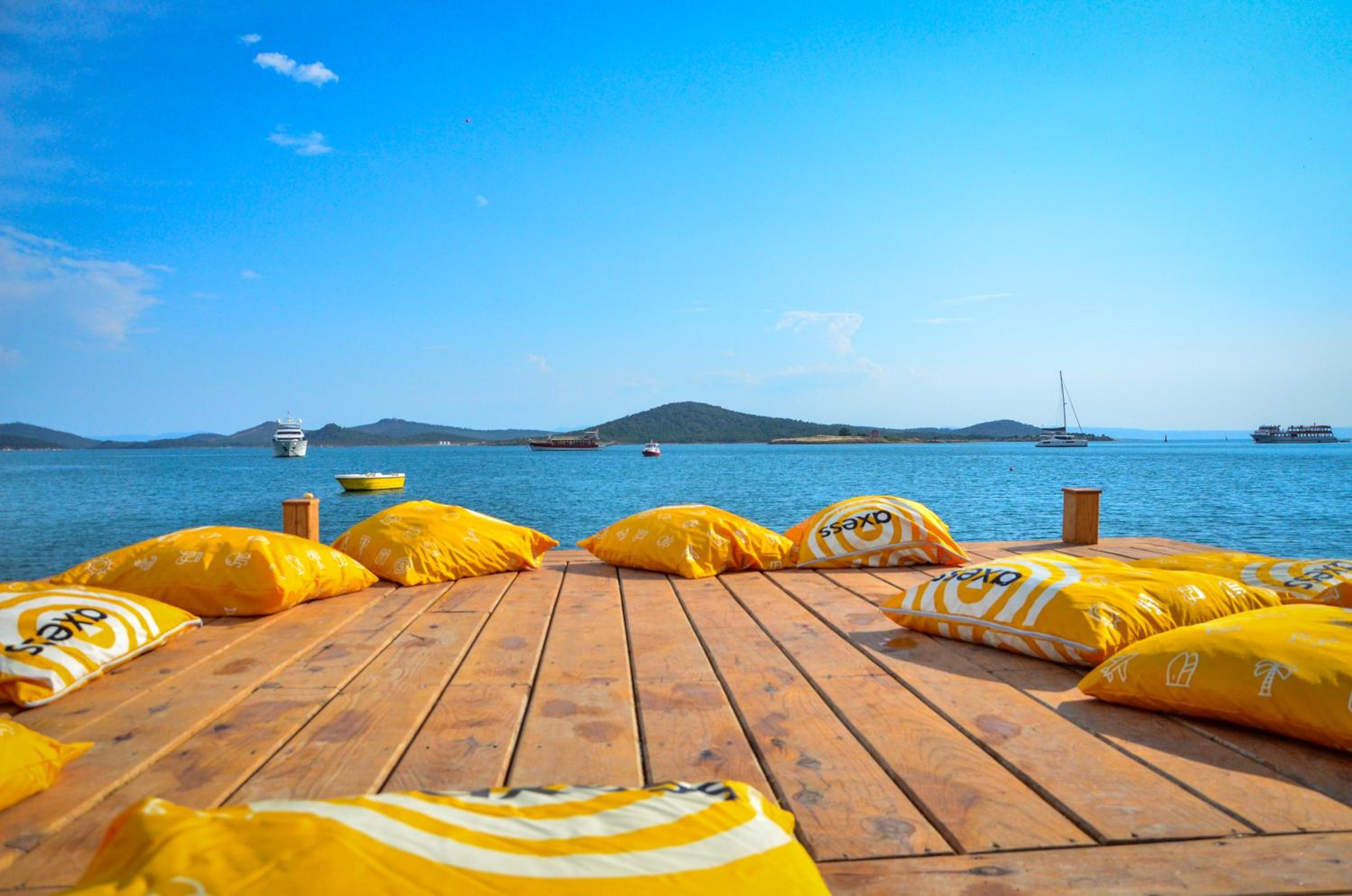 there is nice pool,beach and beach bar and it’s just walking distance to the center , restaurants etc.