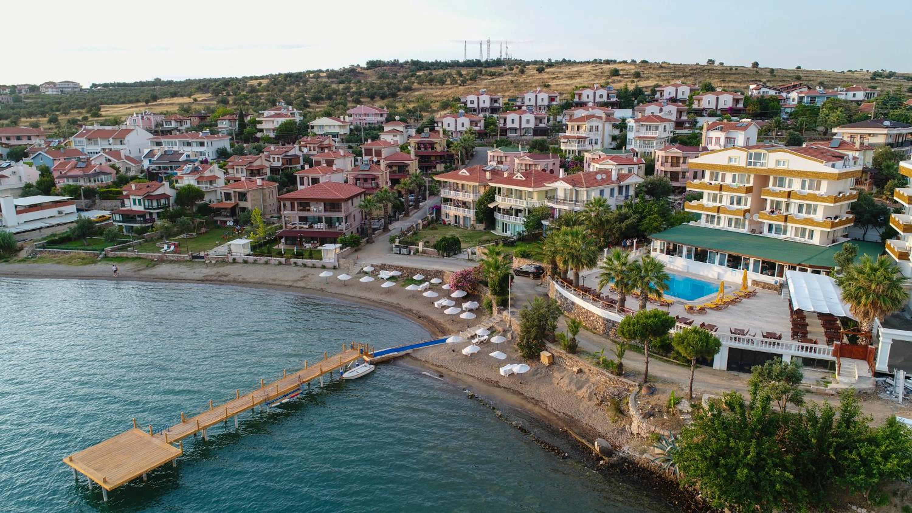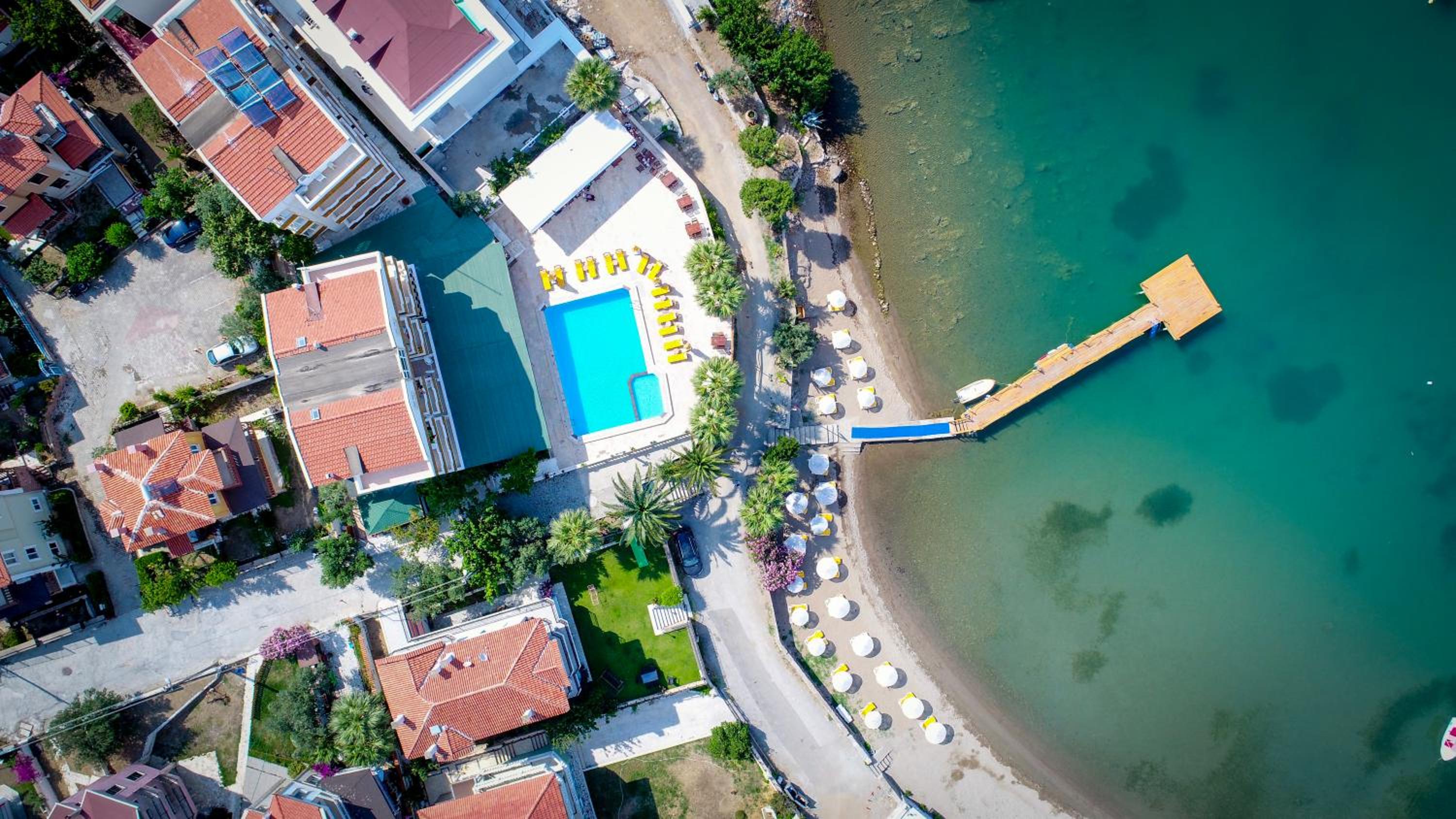 Otel ile pansiyon arasinda kalmis bir hali var. Denize cok yakin.