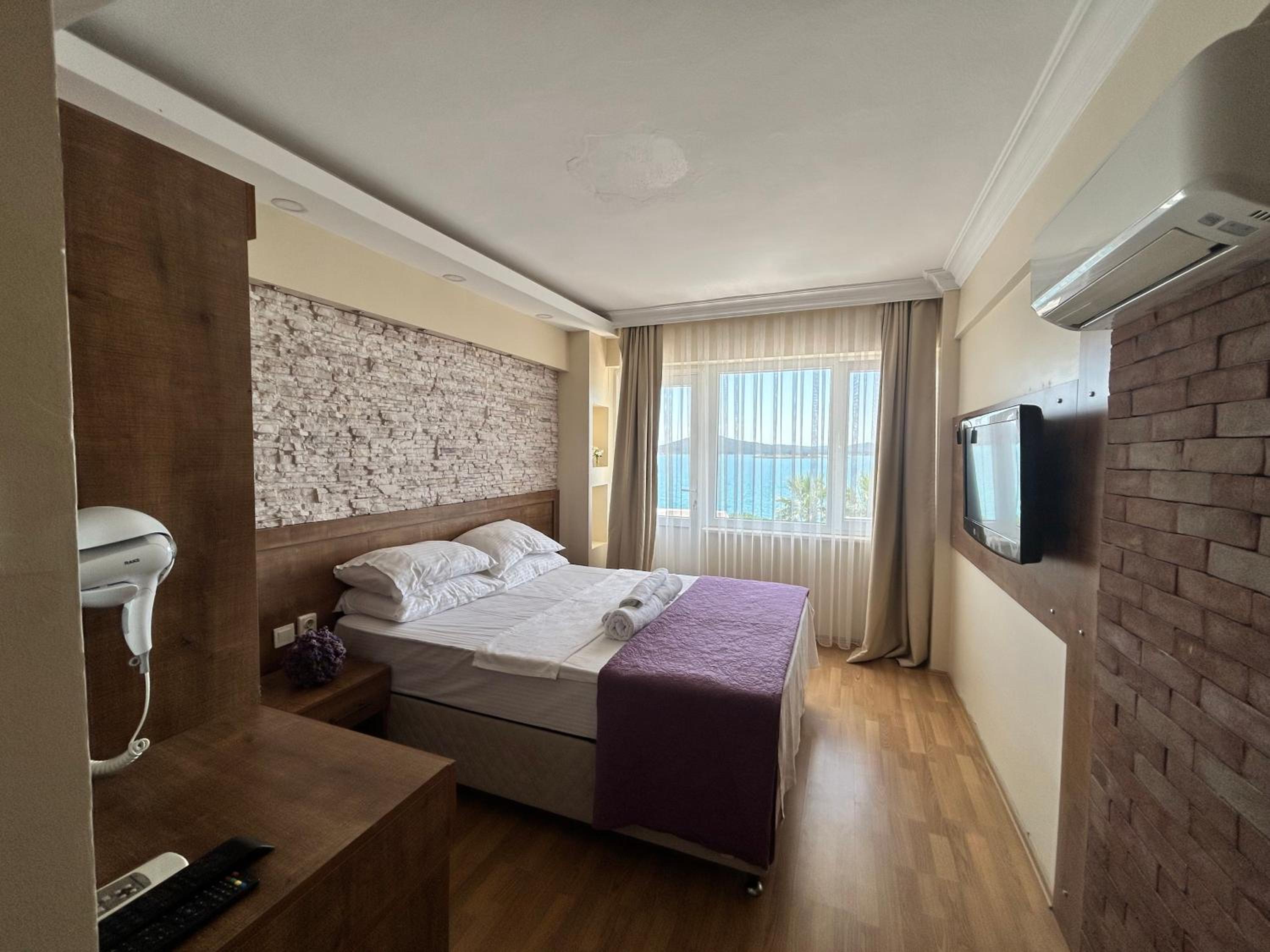 Otelin konumu ve manzarası harika. Ancak eski bir yapı, tadilata ihtiyacı var. Banyo bakımsız, koku var, tuvalet kağıtlığı kopmuş, lavabodan su sicim kalınlığında akıyor, ikici gün sabah kısa bir süre su ve elektrikler kesildi, su nedeniyle banyo yapmaya korktuk. Balkon kapısı düşmüş çok zor açılıp kapanıyor. Odada resepsiyona bağlı bir telefon yok, ihtiyacınız olursa iki kat inip söylüyorsunuz. Tv ve klimayı çalıştırmak ciddi şekilde zor. Covit tehlikesi devam ettiği halde, Kahvaltıda peynir, zeytin, ekmek vb alımlarında herkes aynı maşayı kullanıyor. Biz sezon bittikten sonra 29-30 Ekimde gittik, belki sezonda daha iyidir.