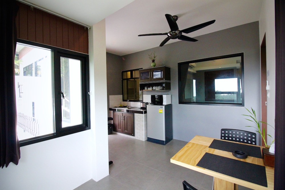 Nous avons été agréablement surpris de la qualité du logement. Nous avions réservé une nuit pour voir et finalement nous avons passé tout notre séjour d'une semaine ici. Un véritable appartement 2 pieces neuf et moderne situé sur les hauteurs de Koh Tao avec vue sur la mer et une partie de l'île. Au calme éloigné des bars et restaurants. Comme cité dans d'autres commentaires il faut grimper quelques marches. Mais pour la vue ça vaut le coup. Quelques petites fourmis se baladent mais sans véritable gêne. Certes pas de piscine ni de restaurant mais un accueil agréable, on nous a offert 2 papayes à notre arrivée, du pain fait maison et surtout le sourire sur les visages de tous les employés. Frigo, micro-onde et tout le nécessaire pour se faire son petit déjeuner. Avoir loué un scooter au préalable pour accéder à l'établissement. Je recommande ce lieu surtout pour les couples, les familles et les personnes souhaitant être au calme