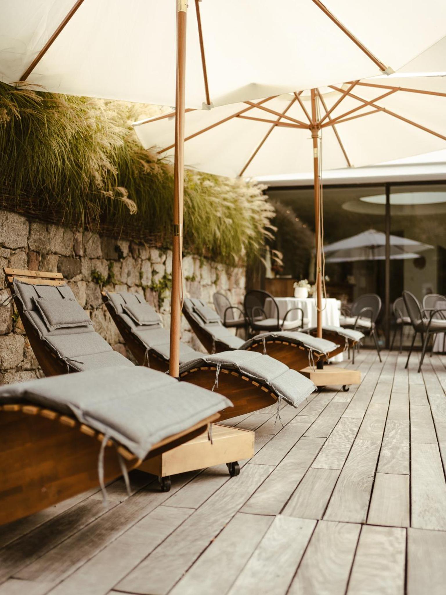 o die Zimmer haben zwar keinen Balkon, aber es gibt um den Außenpool wunderschöne Sitzmöglichkeiten