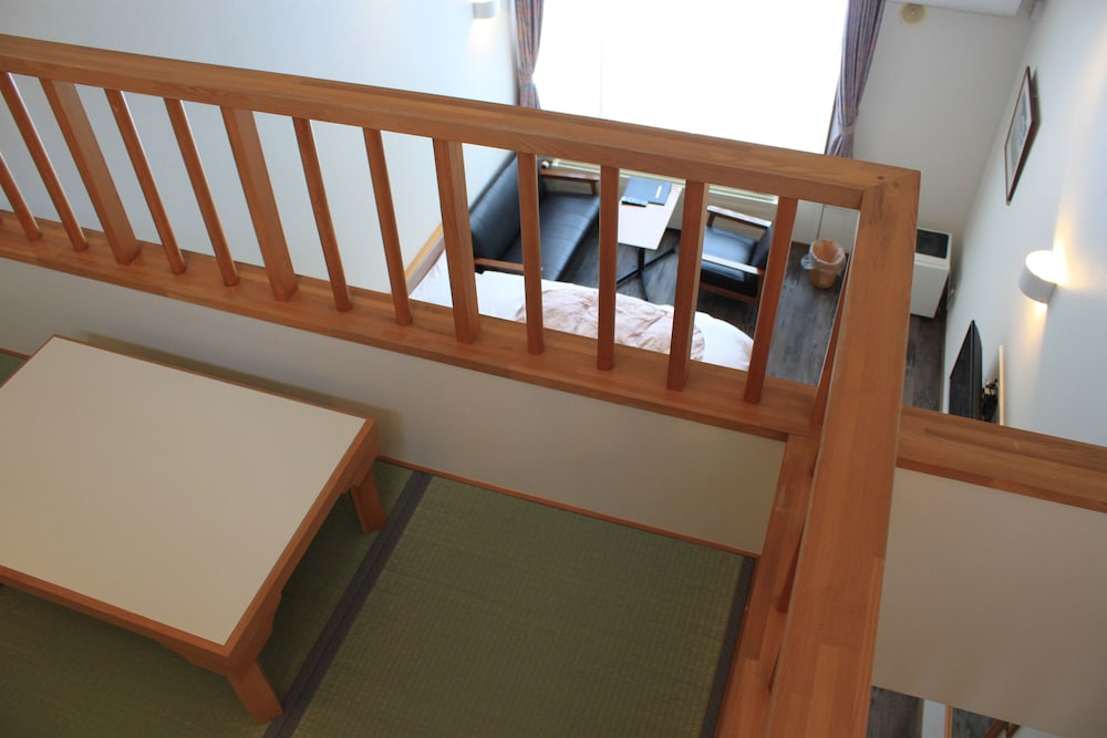Great nature scenery and 10 min walk to the JR station. The staffs are very nice and helpful. A pick up from JR station upon request. The room with a loft and is big, clean, comfort and well organized. You can fit in 4 people. I like the place is surrounding by birds and trees. You can hike or riding a bike along Onuma Lake.