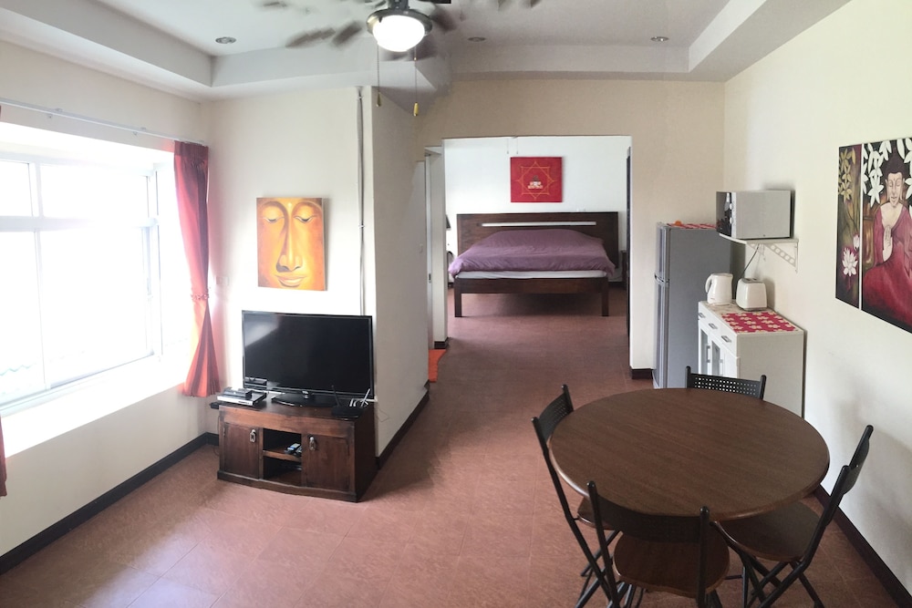 We had a large room which was very comfortable. Good AC units, large bed, fridge, and a small counter with toaster and microwave. The TV only had Thai channels, but we were able to stream using the Wi-Fi.