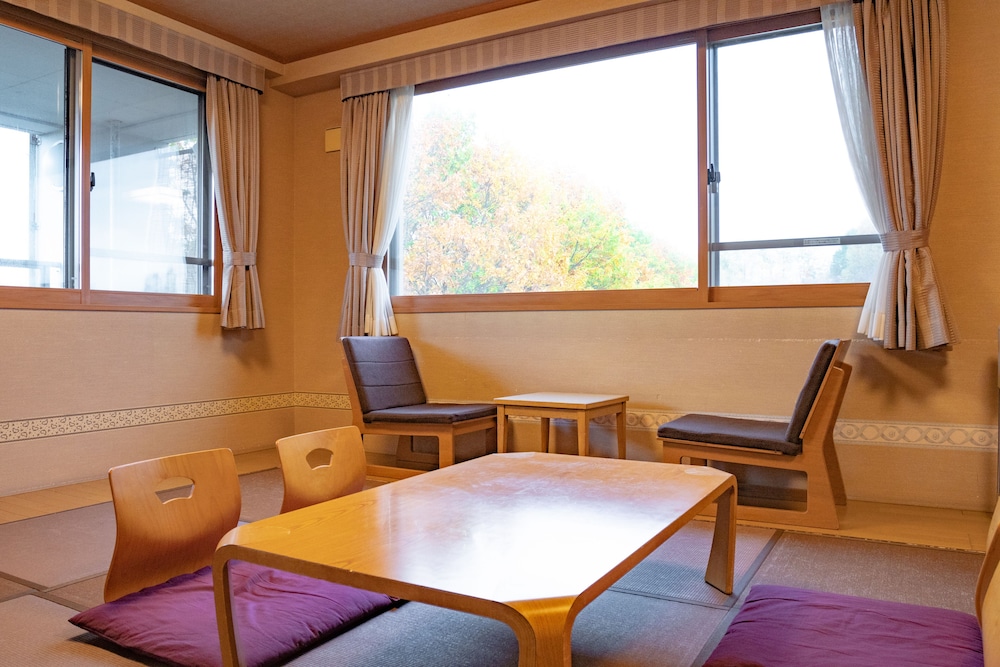 地點偏僻,往市中心駕車要十五分鐘,被編配房間在一樓,正正在地下,必須關上窗簾,行人及停車場就在窗外,當時要求更換巳沒房間,最好在預訂房間時要求在較高樓層,值得一提房間空間很好,設備也先進,溫泉景色一般,本來預期地點偏僻露天風呂會不錯,但有點失望。